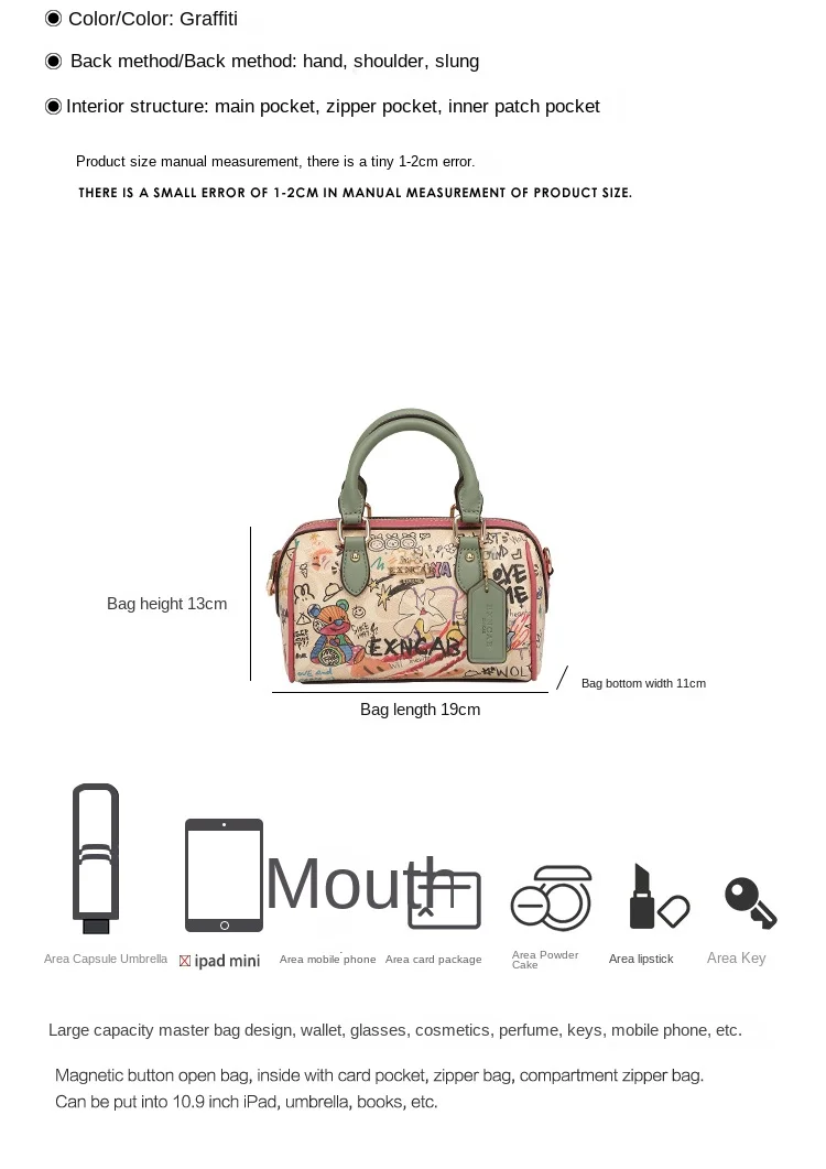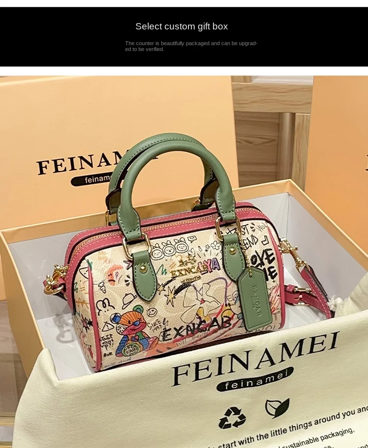 Brand Women's Handbag 2025 Spring/Summer New High end Single shoulder Crossbody Bag Graffiti Bear Boston Pillow Bag