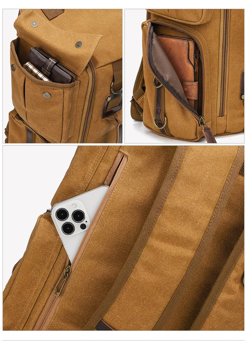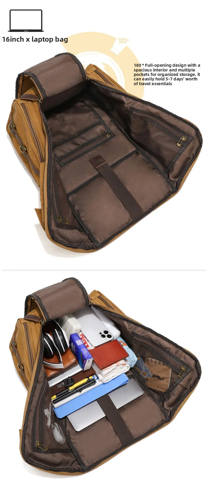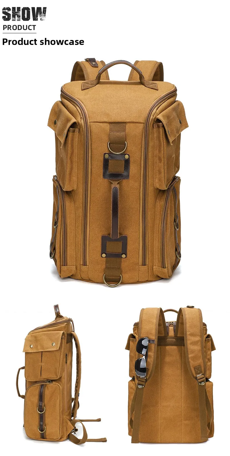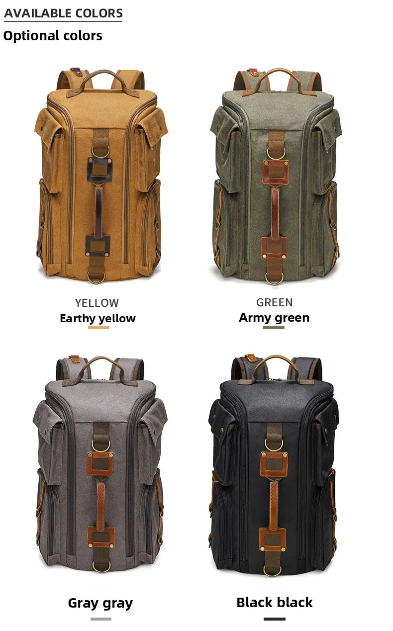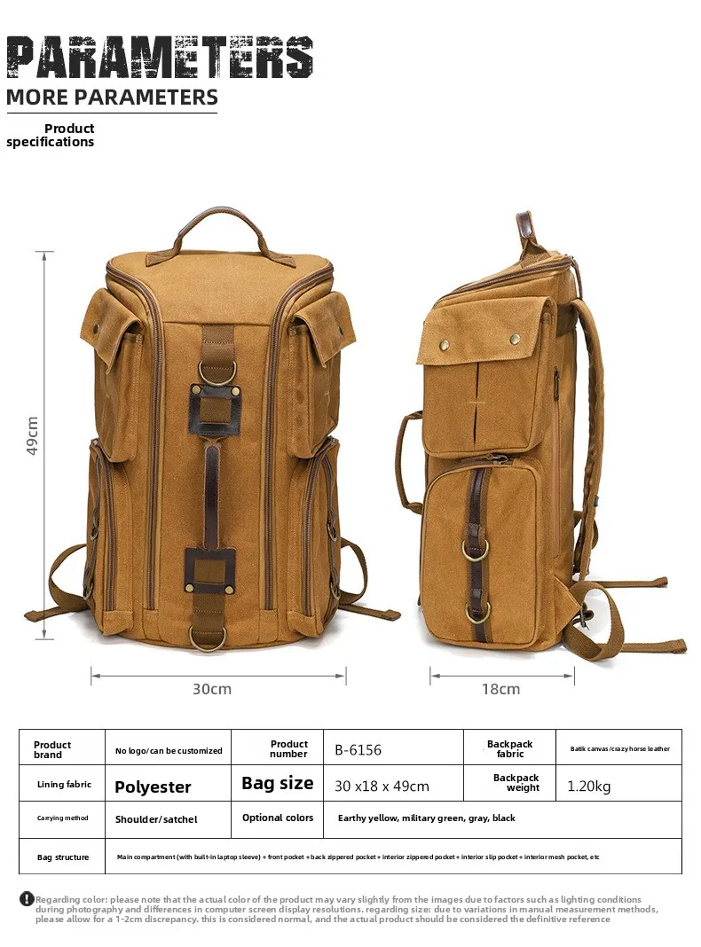 Canvas backpack - outdoor large-capacity waterproof travel double-shoulder bag, durable and breathable computer bag