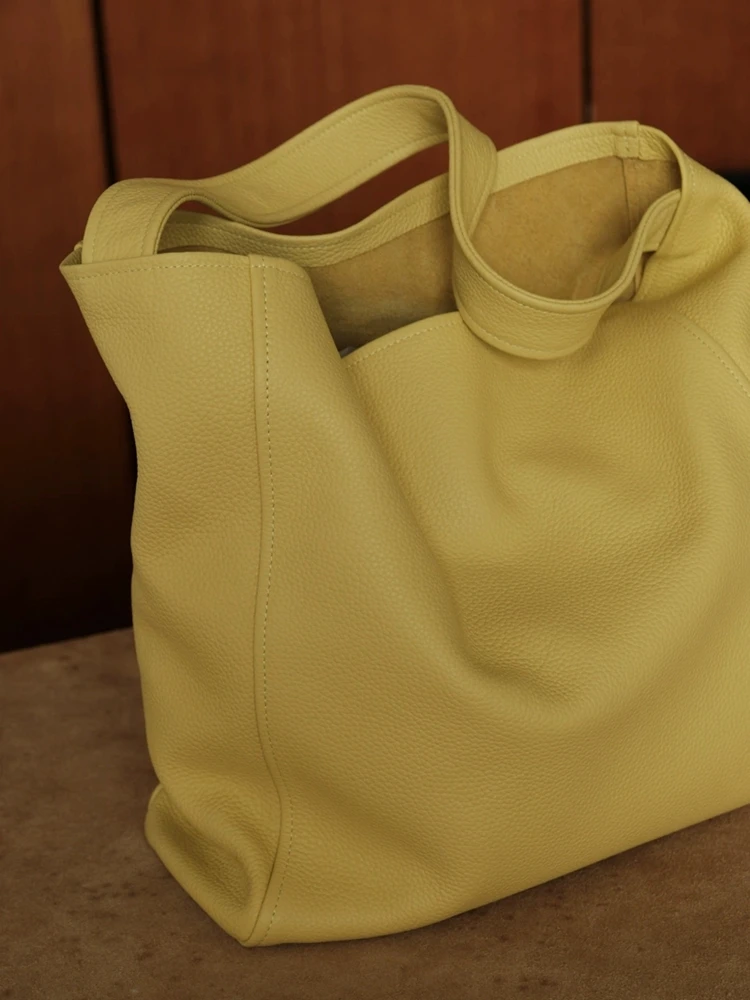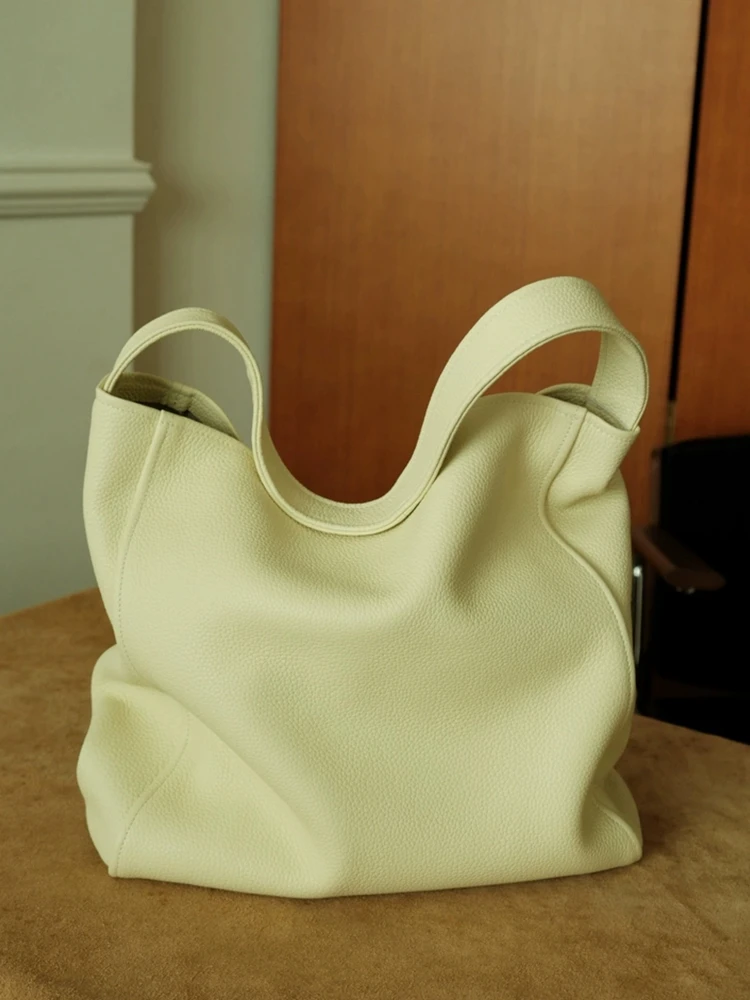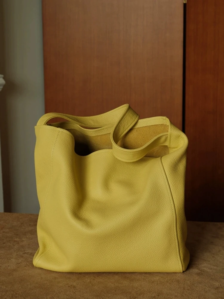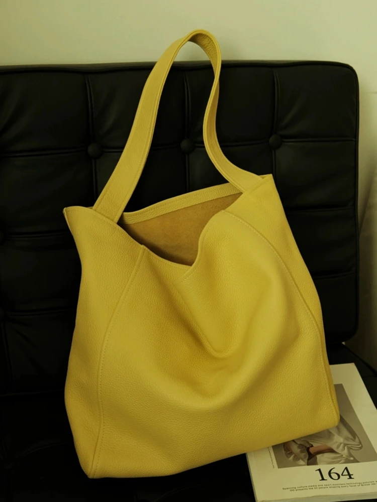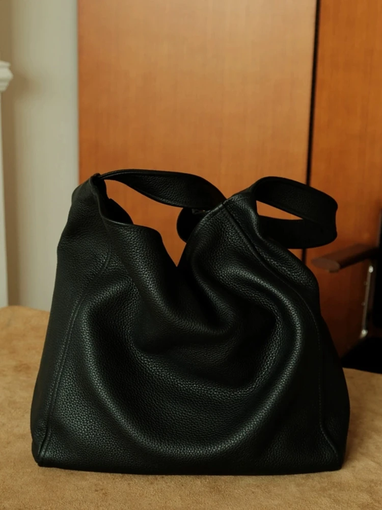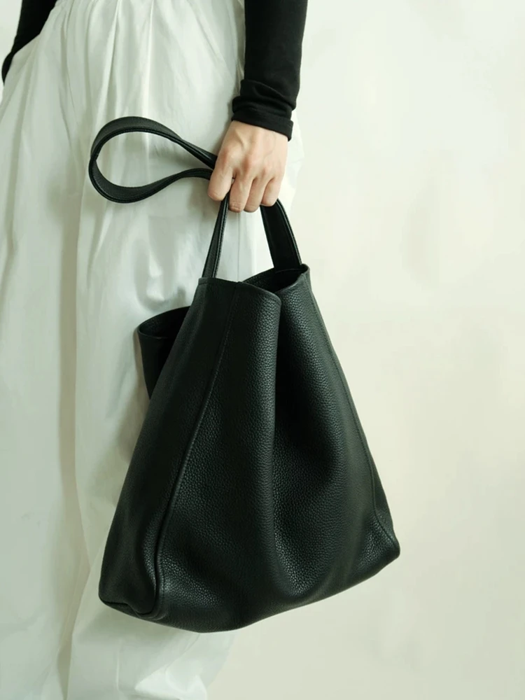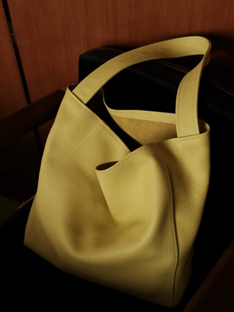 Fashion Simple Retro Genuine Leather Bucket Bag Women Tote Bag\Handbag Lady Shoulder Bag Commuter Underarm Bag Large