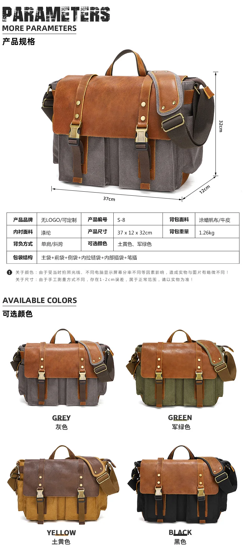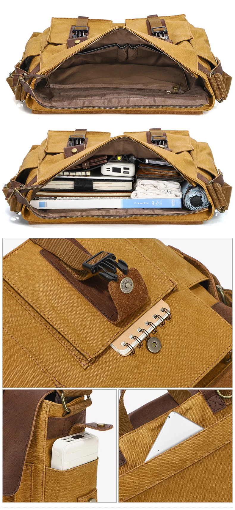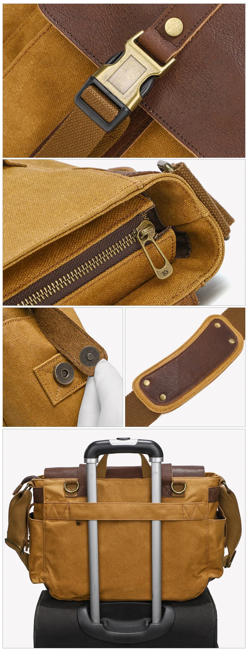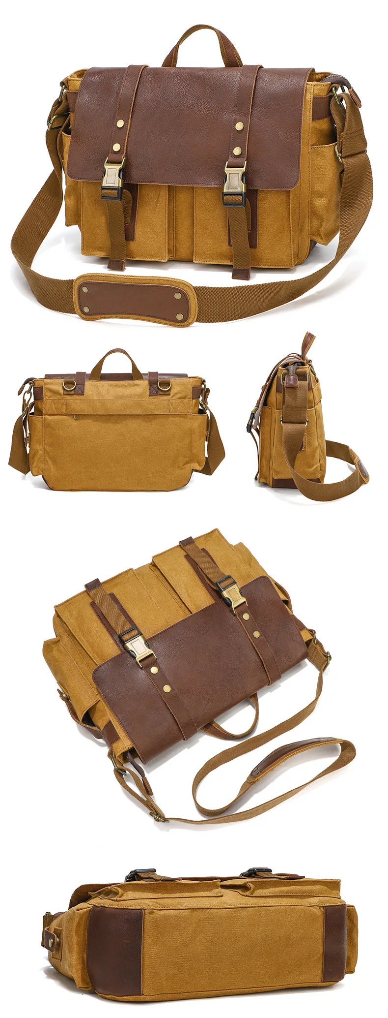 Canvas with Cowhide Men Messenger Bags Big Satchel Shoulder Bags Male Laptop Briefcase Travel Handbag