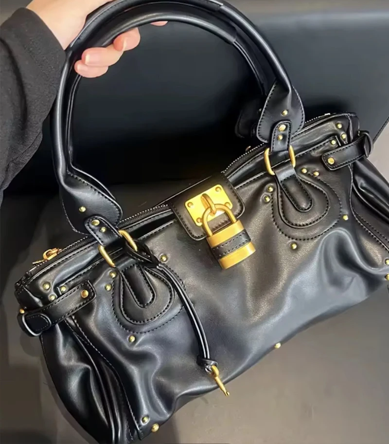 Classic Boston Pillow Bags For Women Luxury Designer Handbags And Purses 2025 New In PU Rivet Lock Top Handle Underarm Shoulder