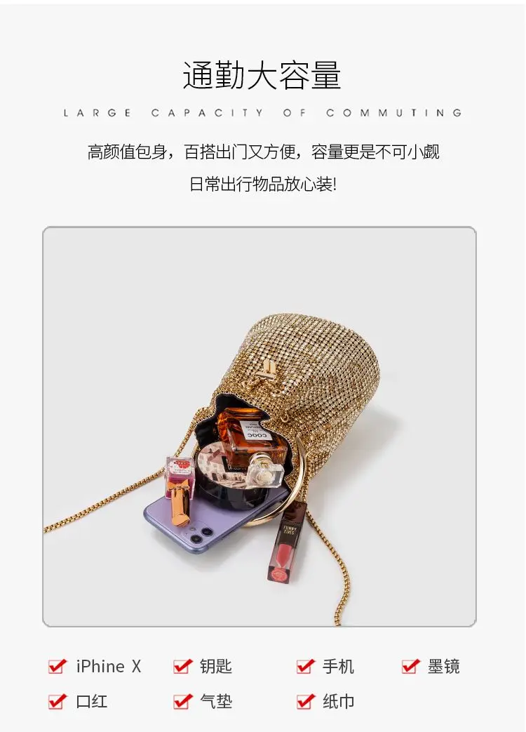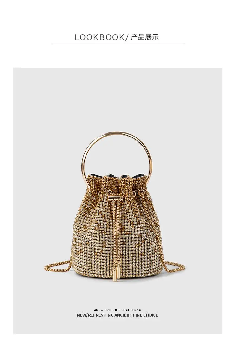 Diamond Bucket Bag for Women 2024 New Rhinestones Bling Shoulder Bags fashionTote Handbag Luxury Design Purse Crossbody Bag