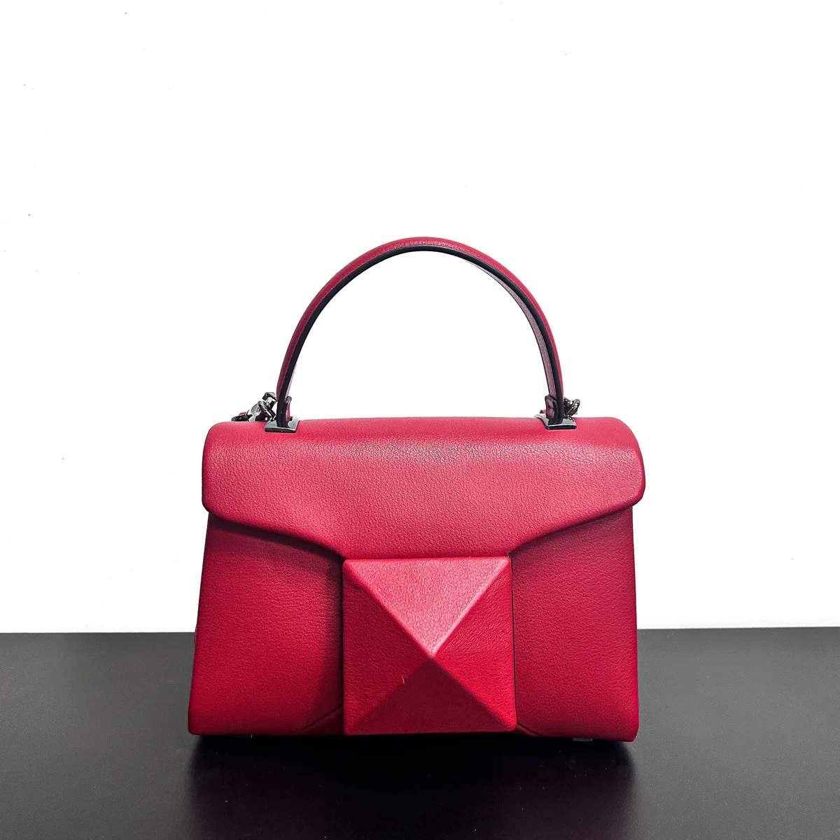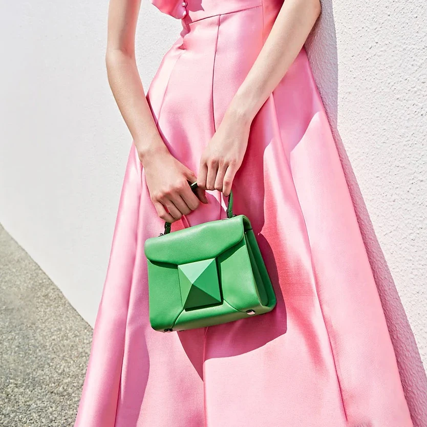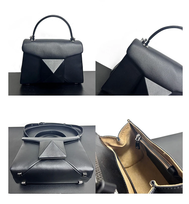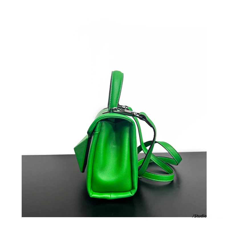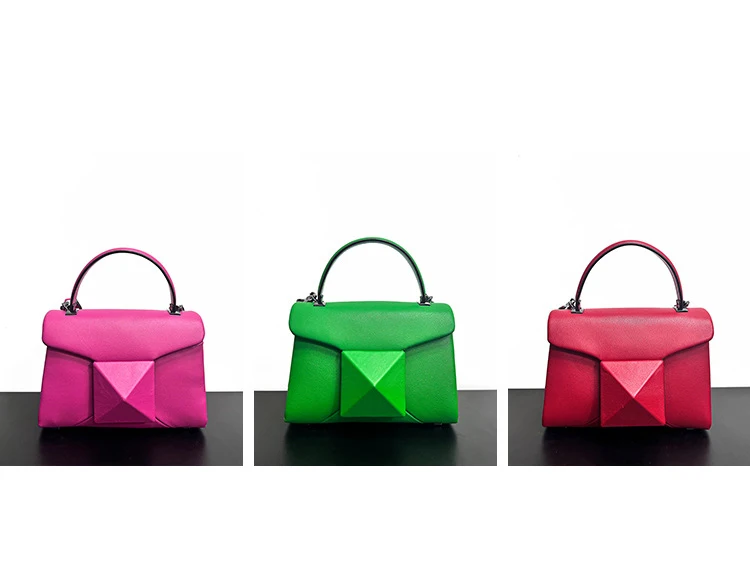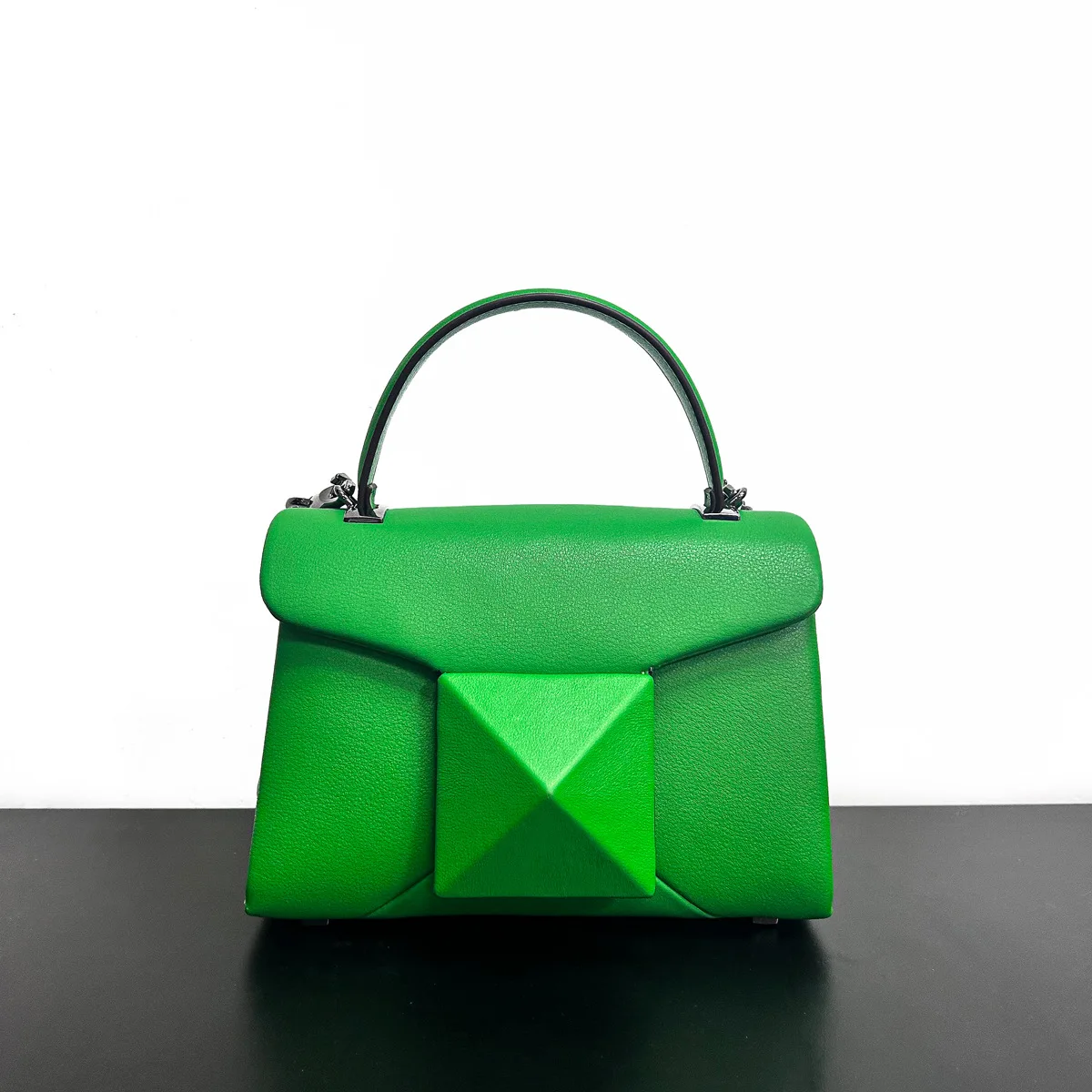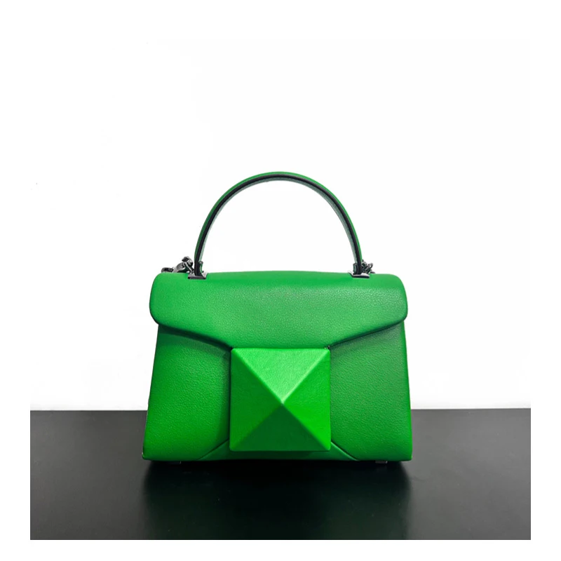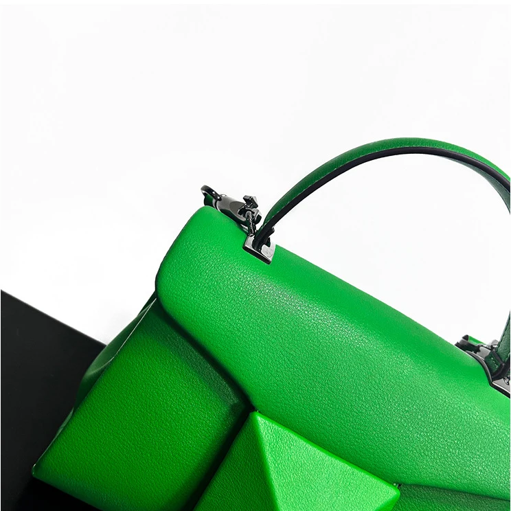 Genuine leather rivet shoulder bag 2025 luxury design commuter mini cowhide crossbody bag vintage green fashionable ladies handbag