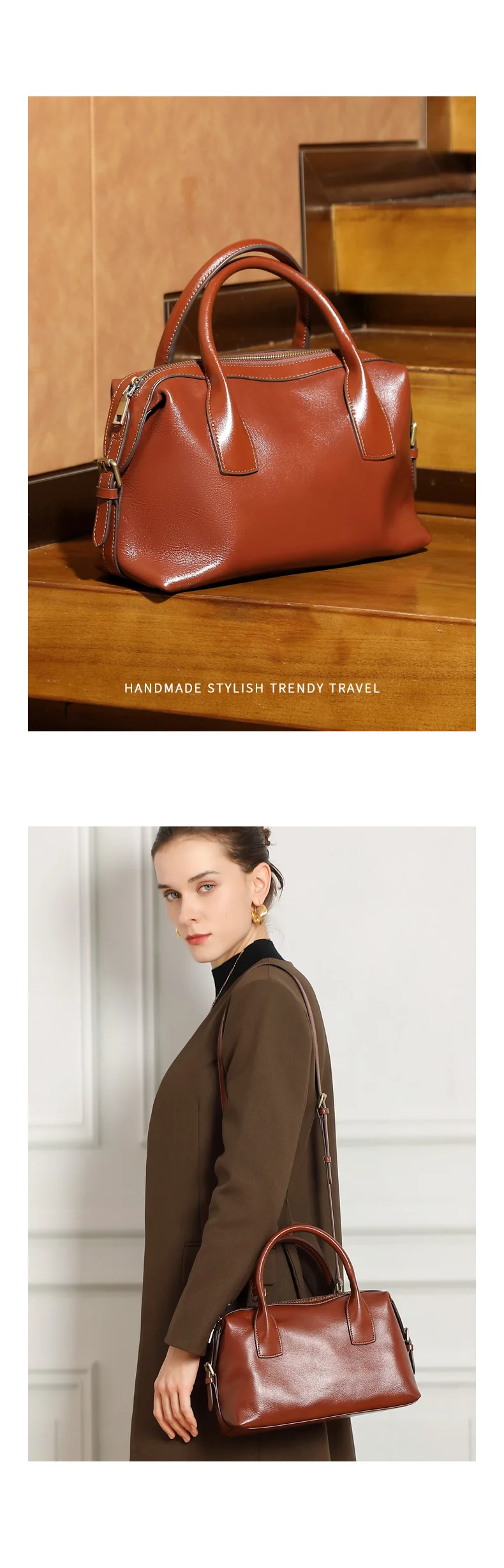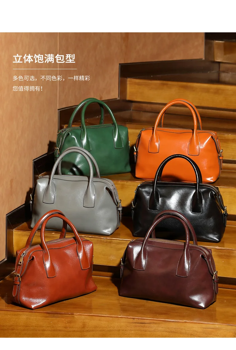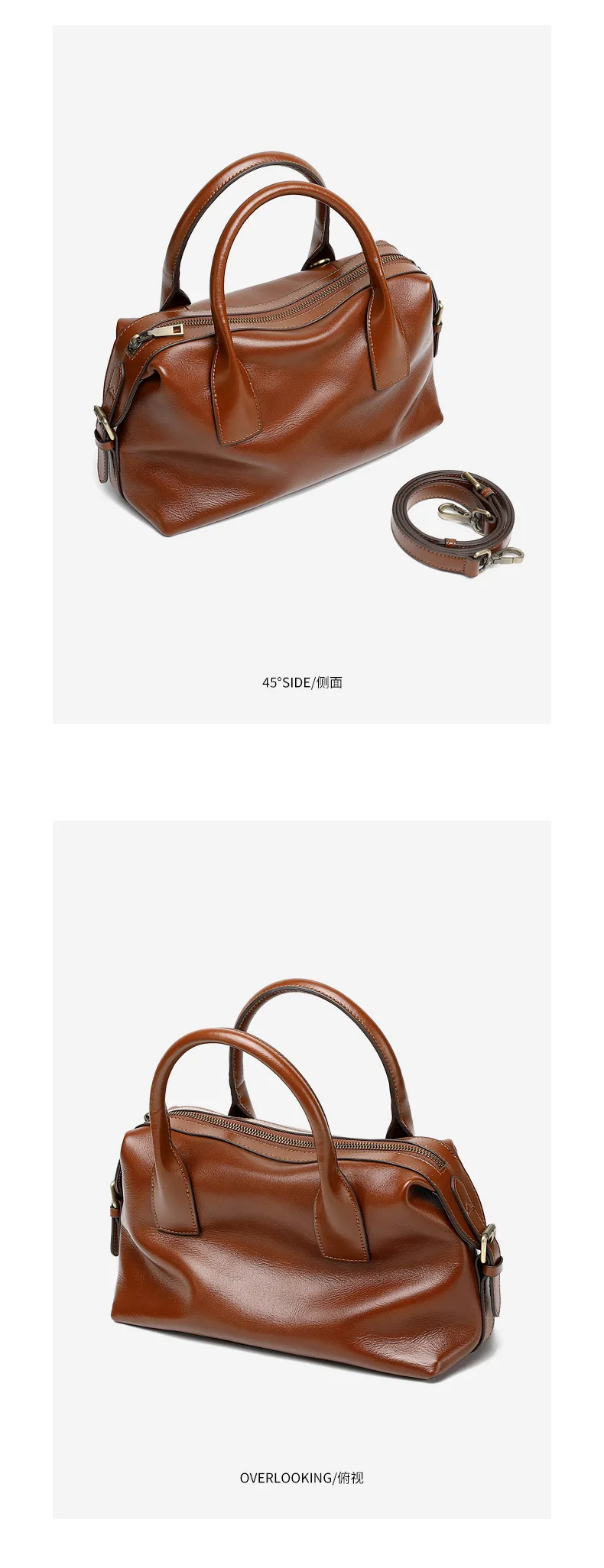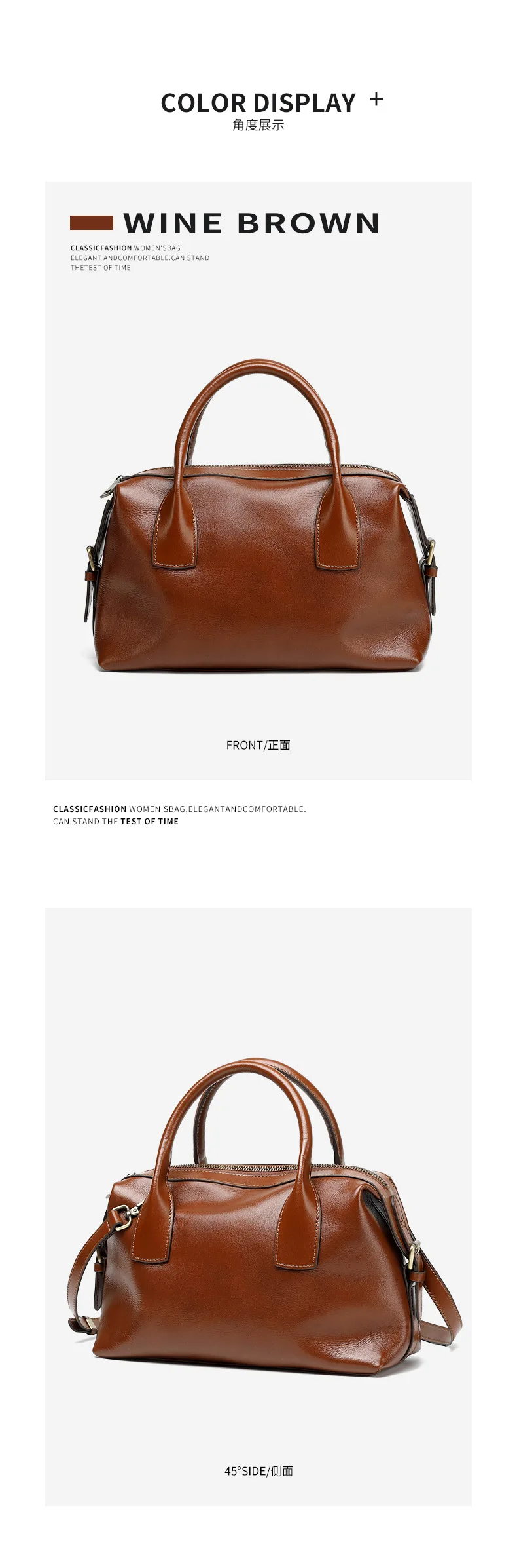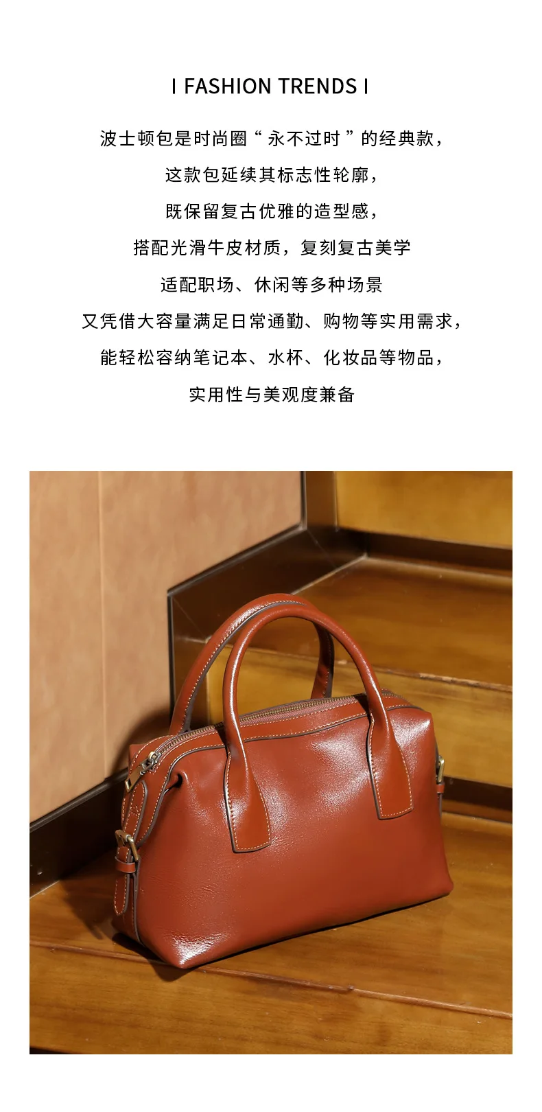 Genuine Leather Women's Bag Vintage Luxury Designer Boston Handbag Women Versatile Shoulder Bag Cowhide Female Crossbody Bags