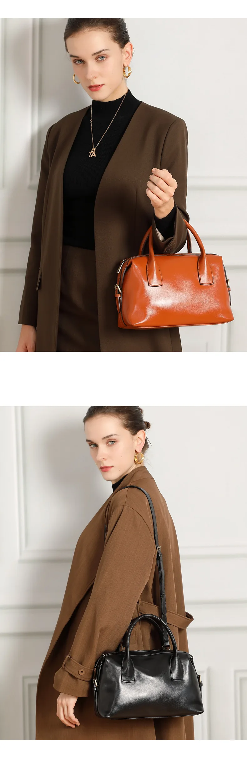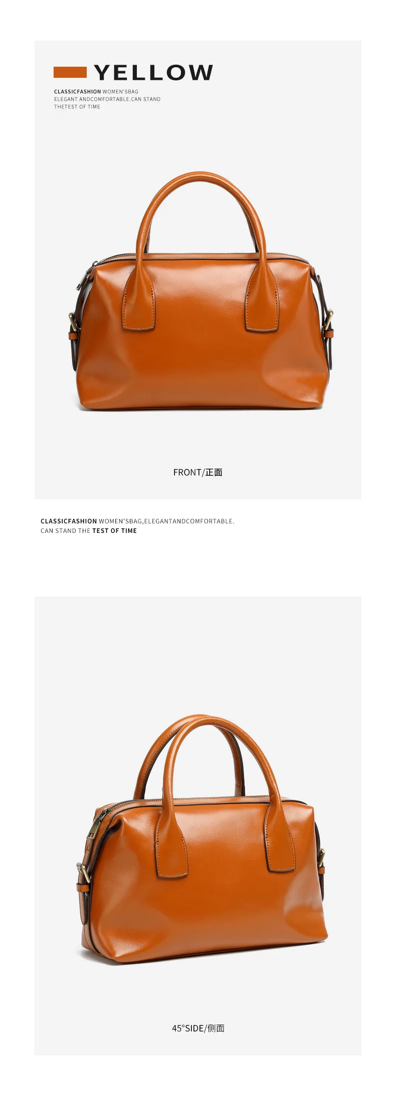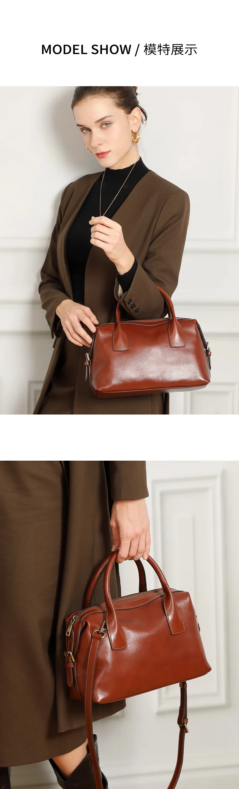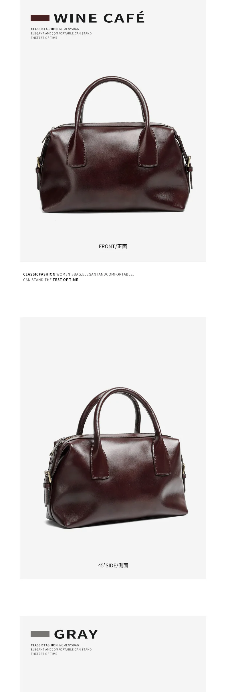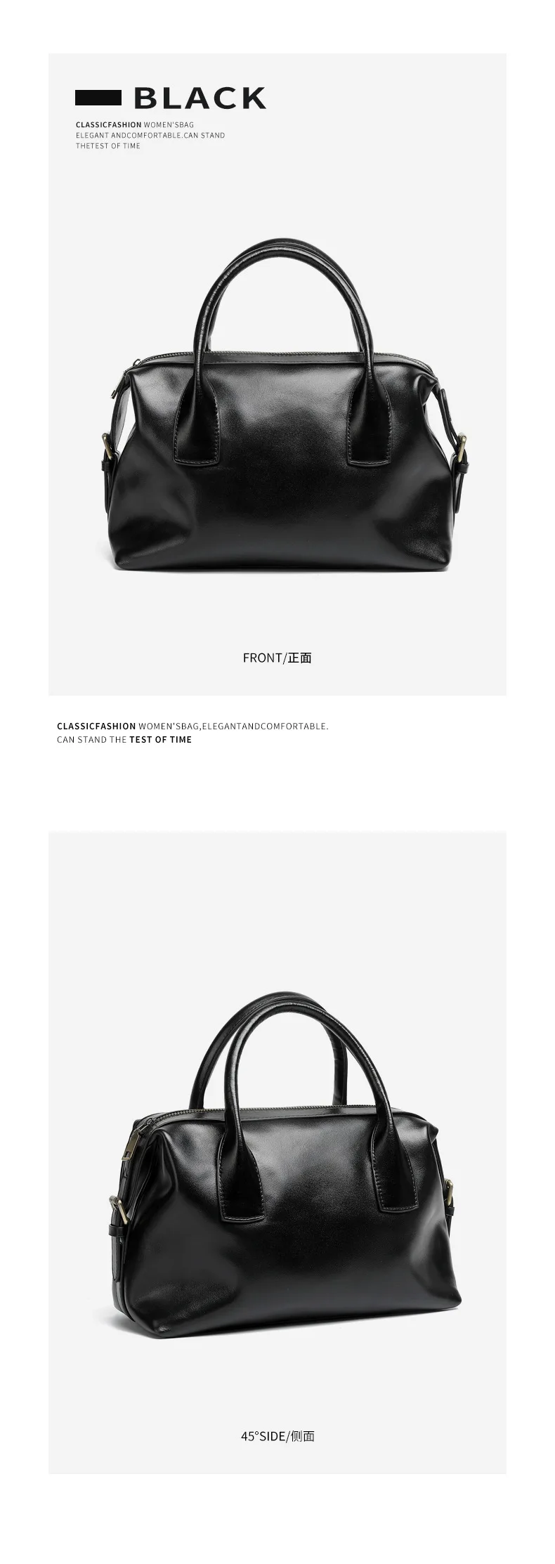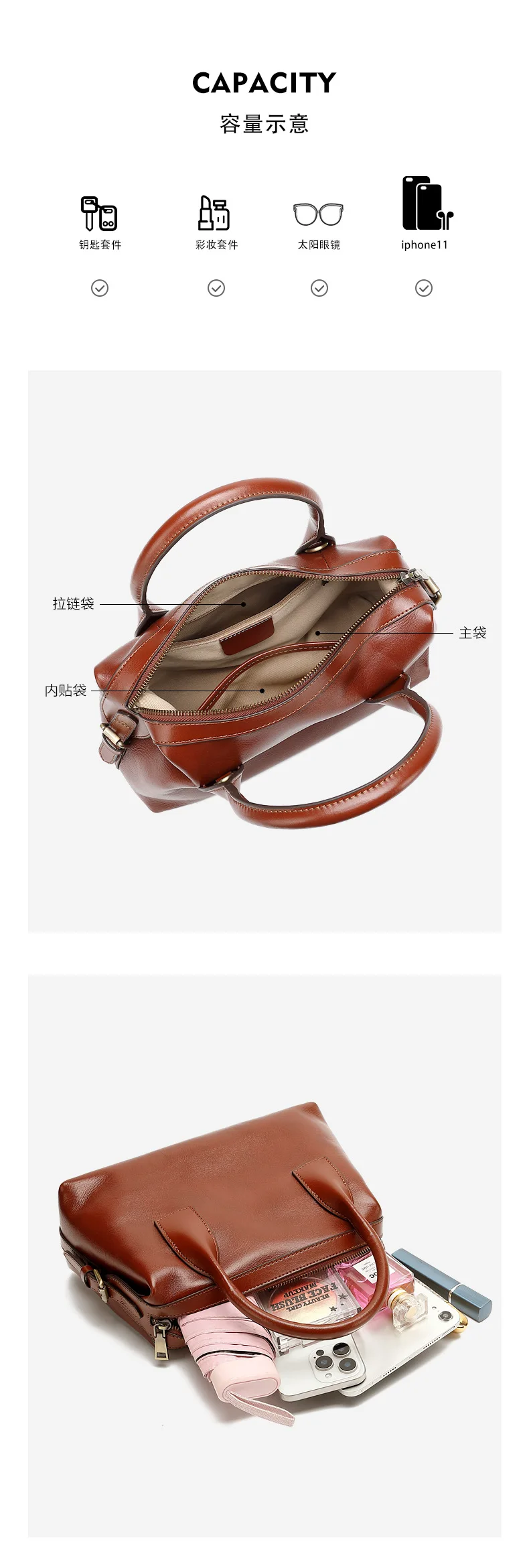 Genuine Leather Women's Bag Vintage Luxury Designer Boston Handbag Women Versatile Shoulder Bag Cowhide Female Crossbody Bags