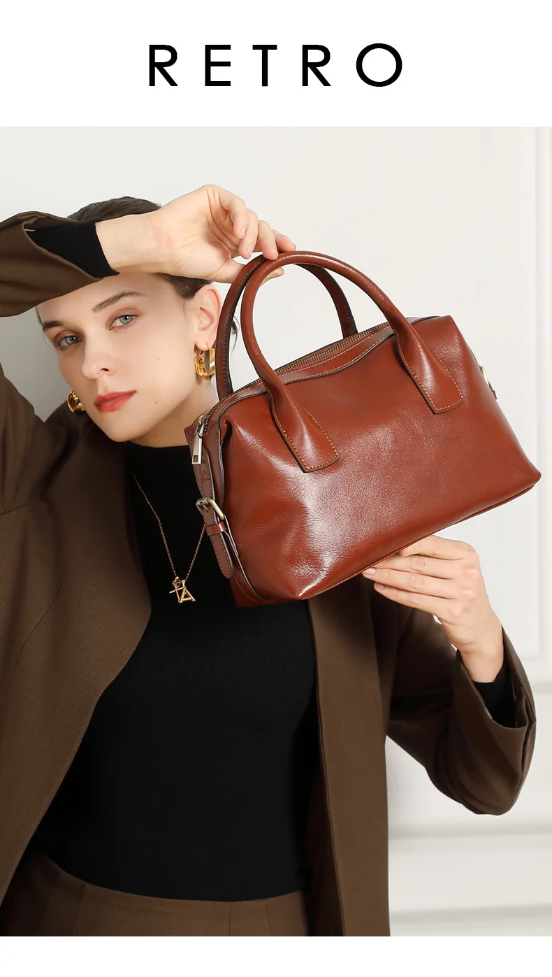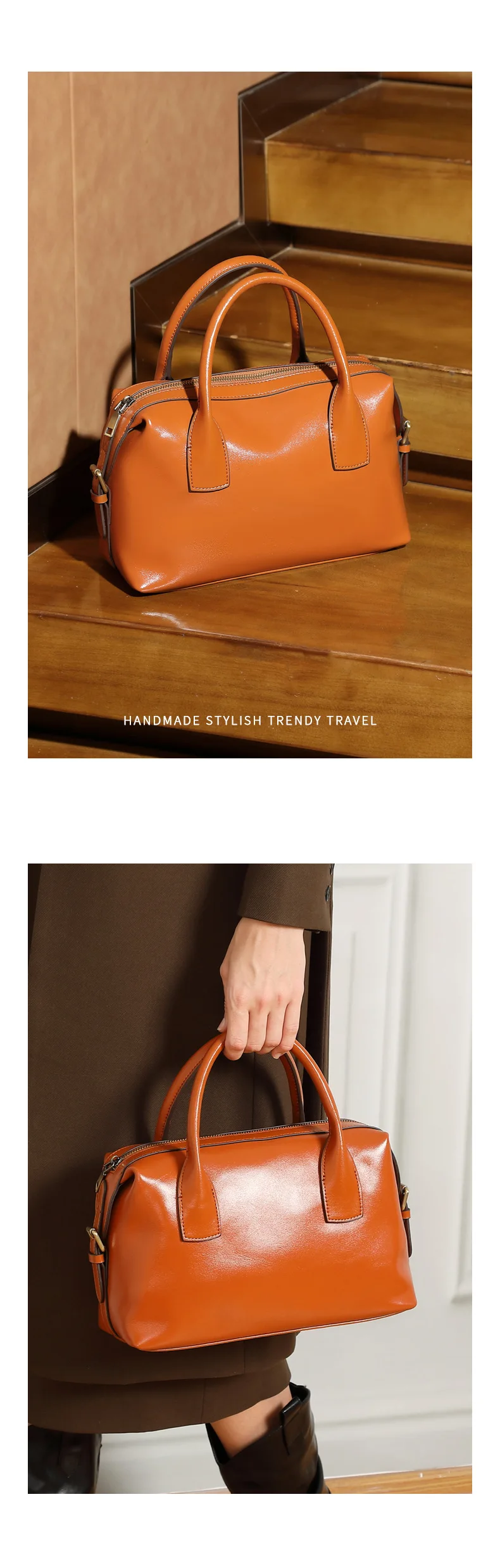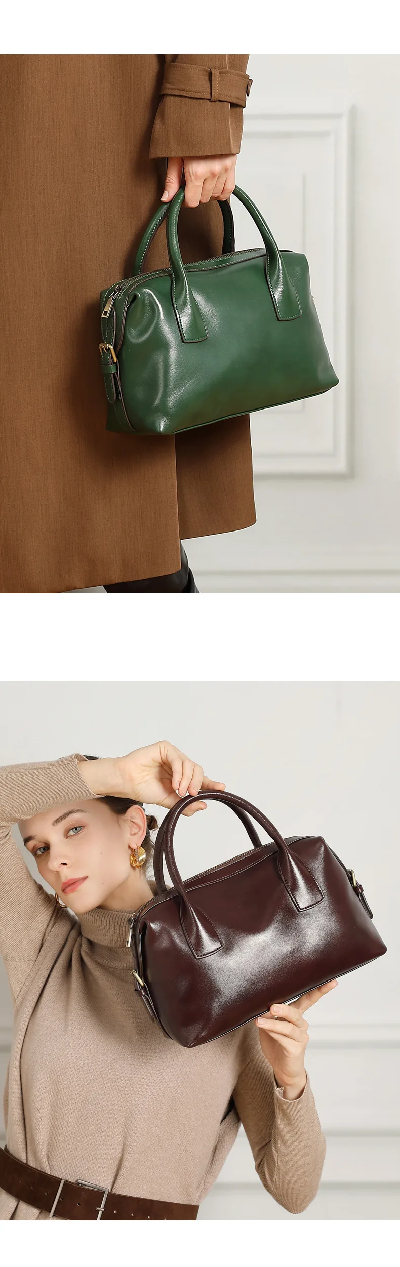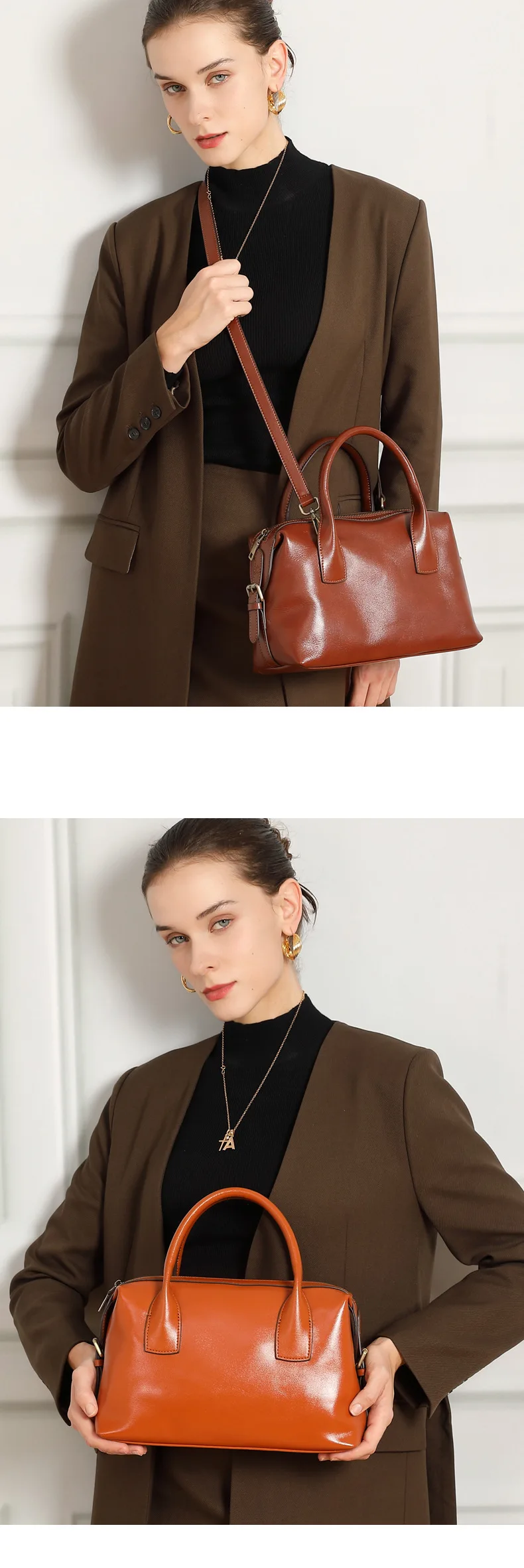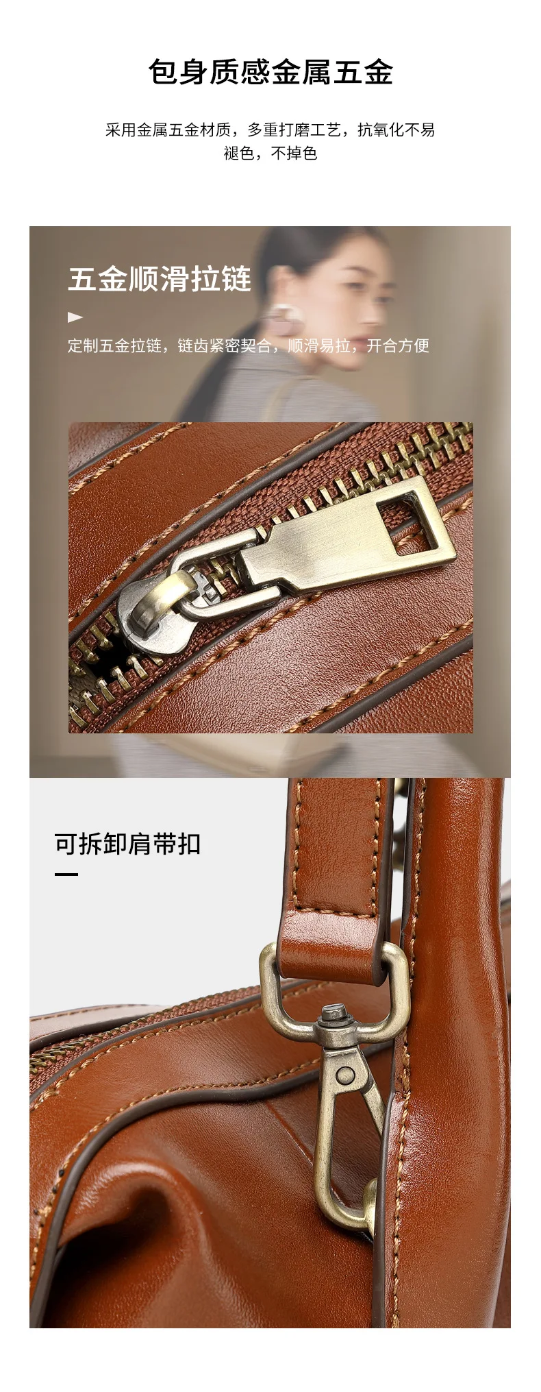 Genuine Leather Women's Bag Vintage Luxury Designer Boston Handbag Women Versatile Shoulder Bag Cowhide Female Crossbody Bags
