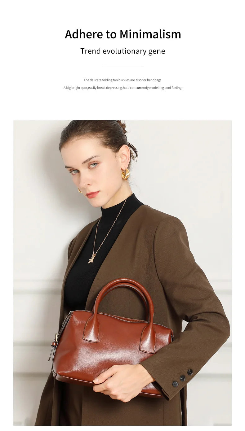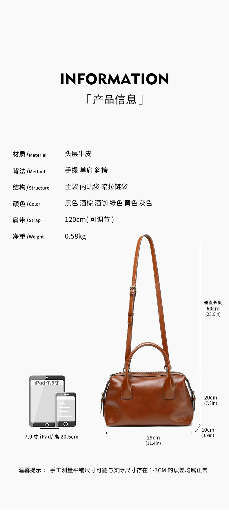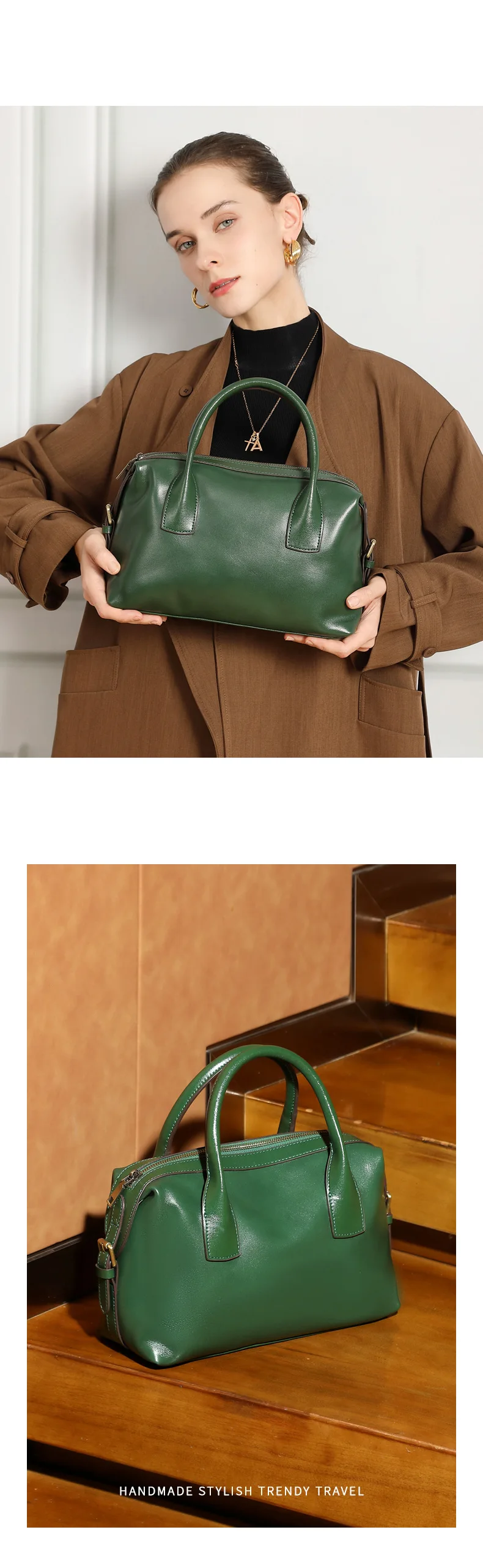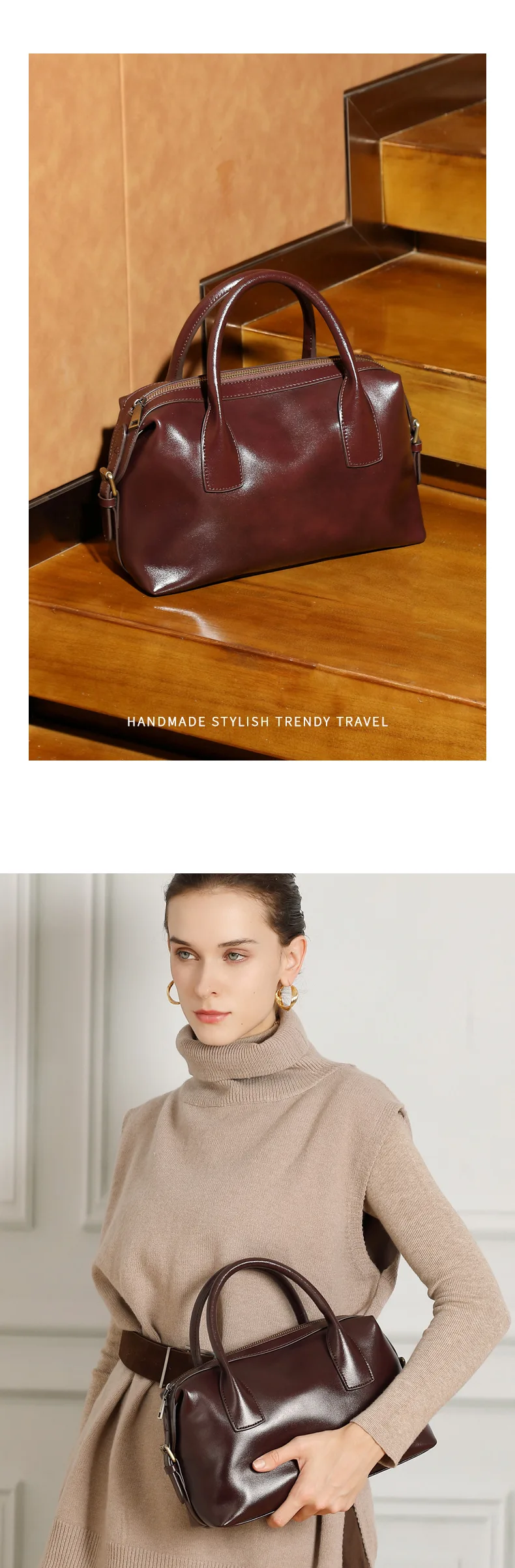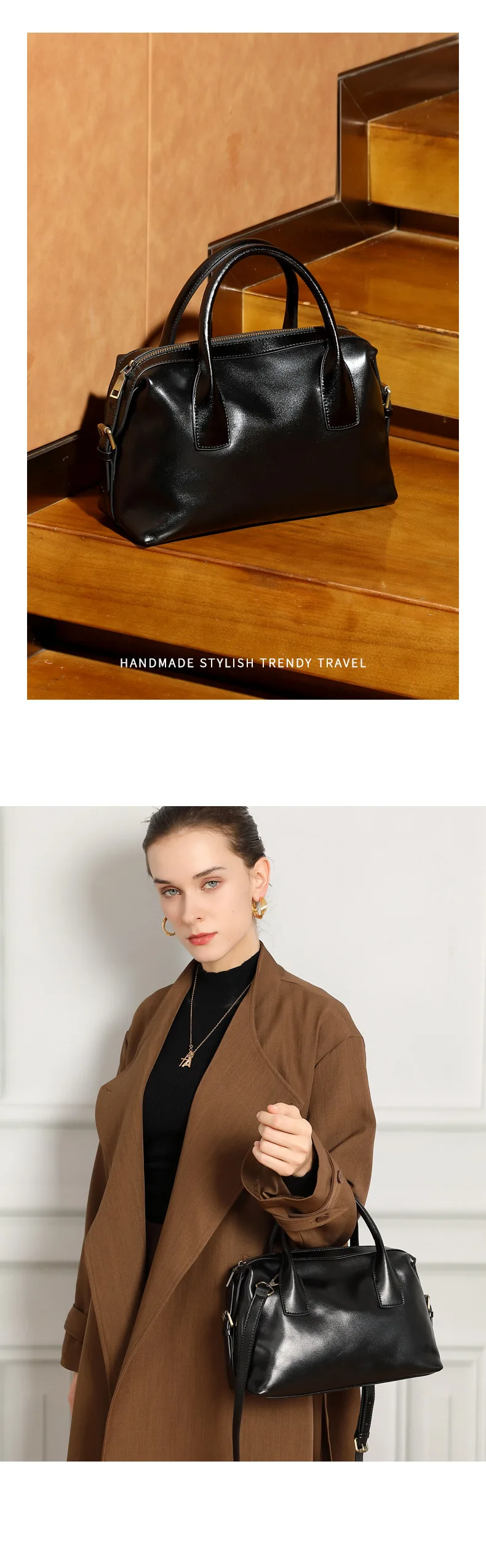 Genuine Leather Women's Bag Vintage Luxury Designer Boston Handbag Women Versatile Shoulder Bag Cowhide Female Crossbody Bags