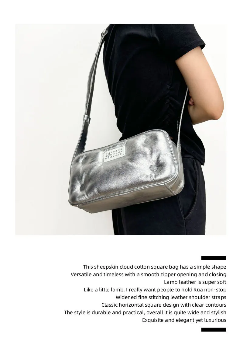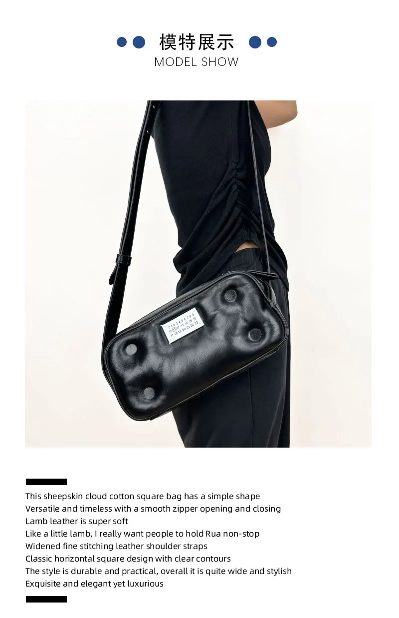 Hot Sale Of The Season New Street Fashion Versatile Genuine Leather Sheepskin Cloud Crossbody Single Shoulder Square Pillow Bag