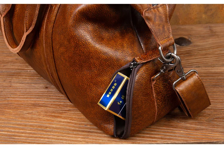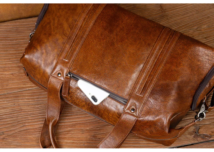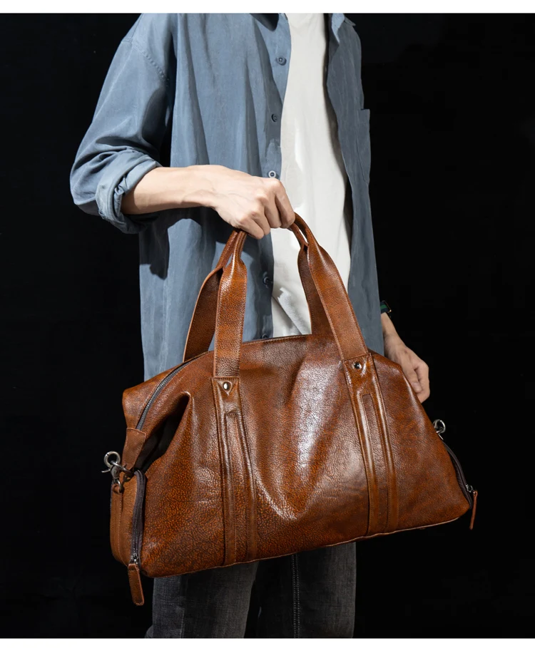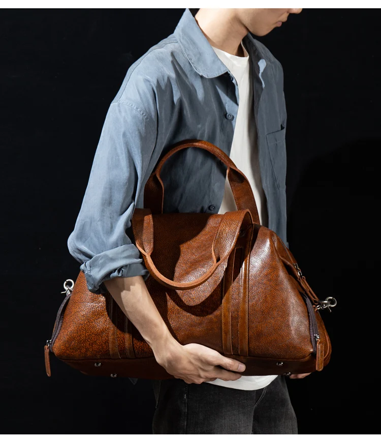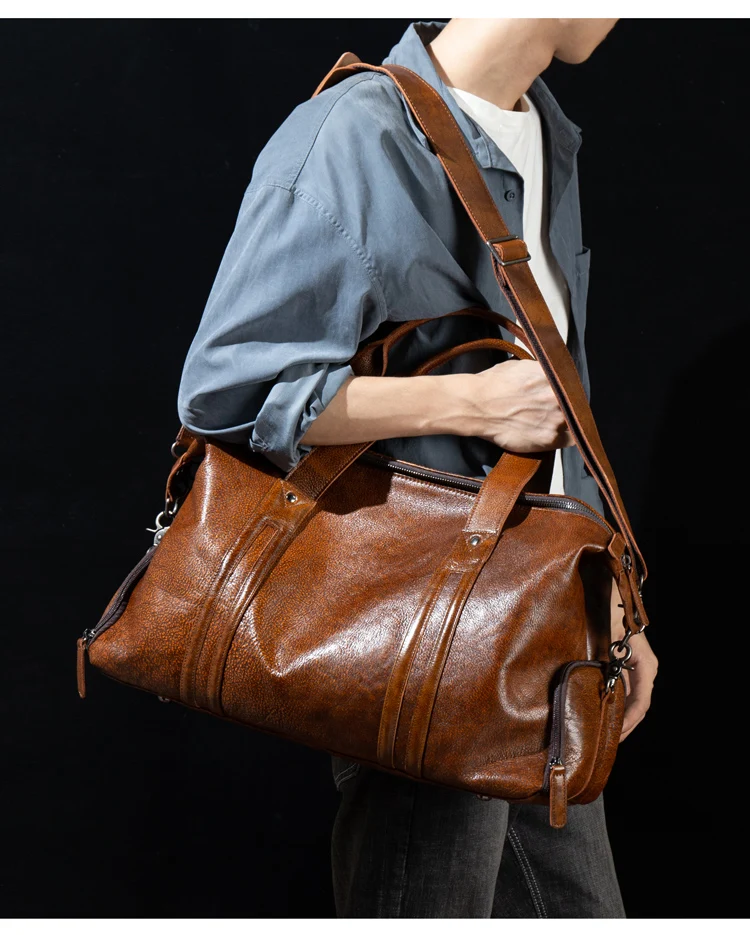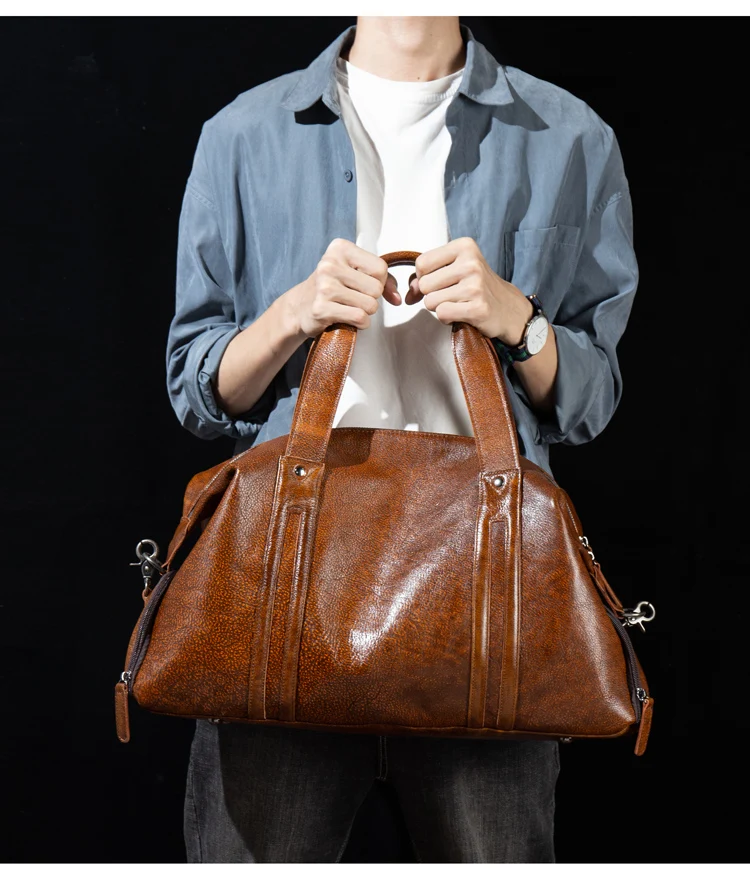 Leather short-distance travel bag men's hand-held large-capacity travel bag top layer leather shoulder bag travel bag