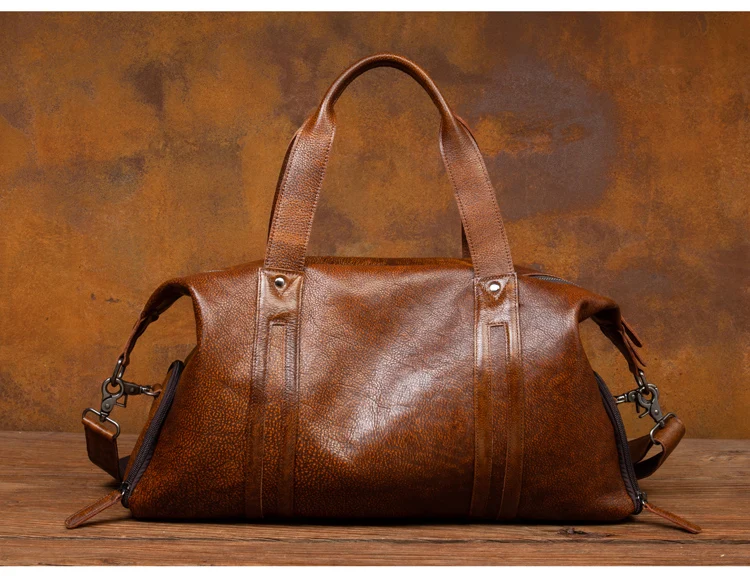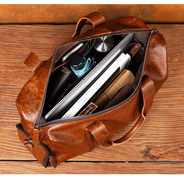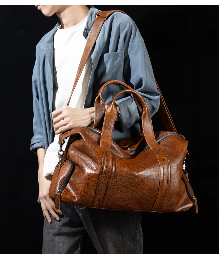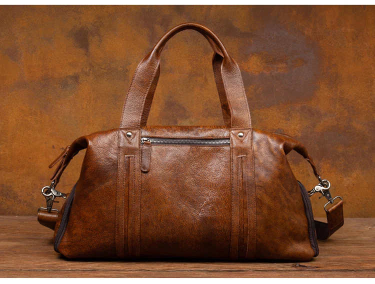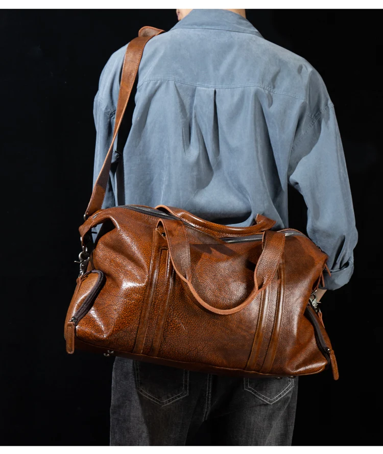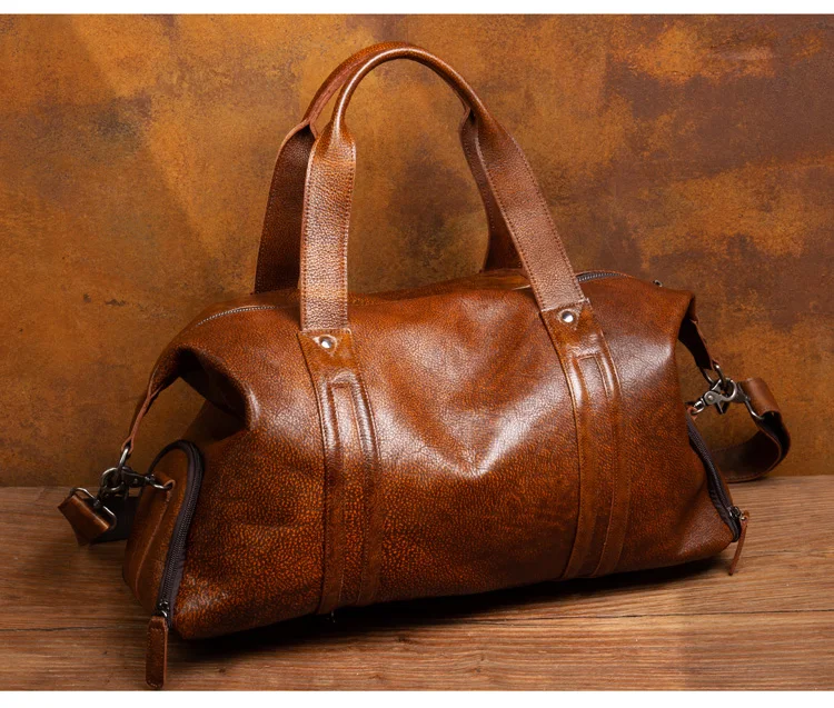 Leather short-distance travel bag men's hand-held large-capacity travel bag top layer leather shoulder bag travel bag