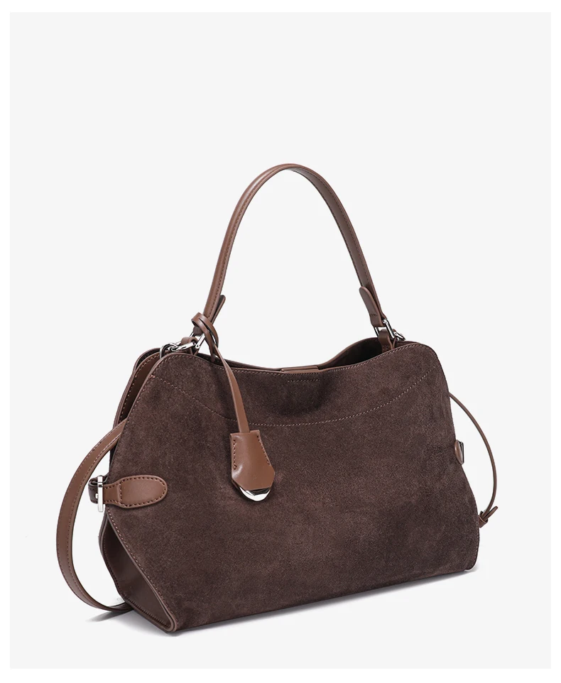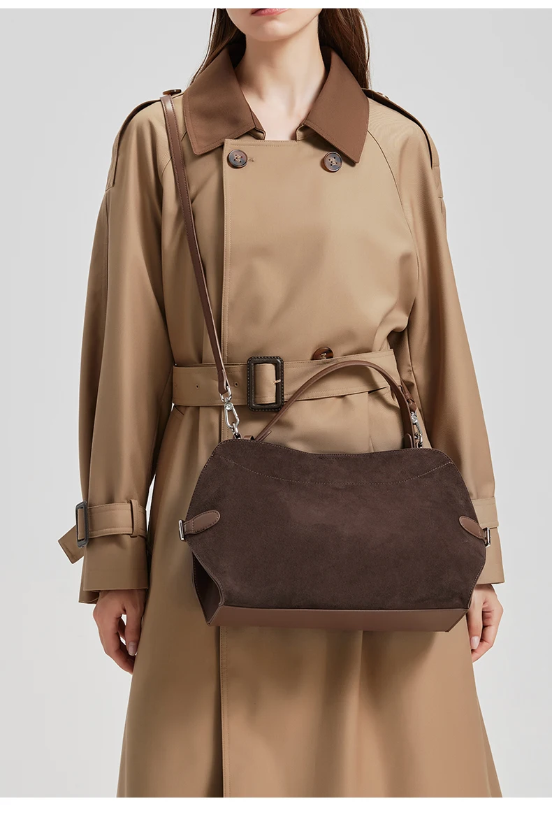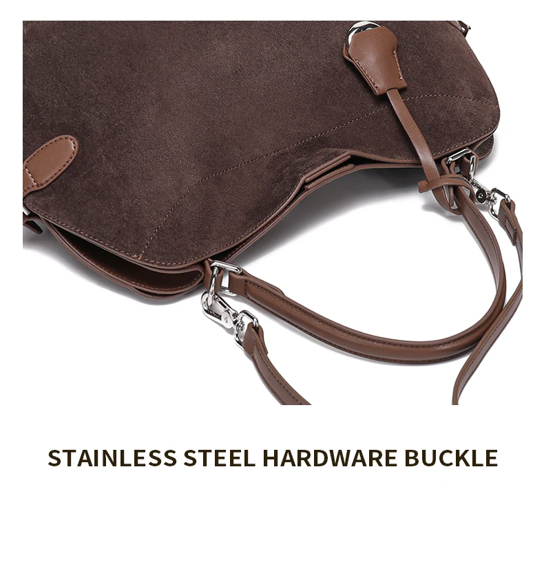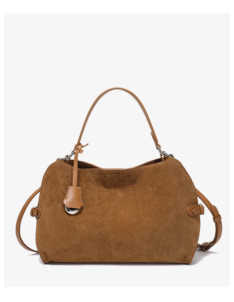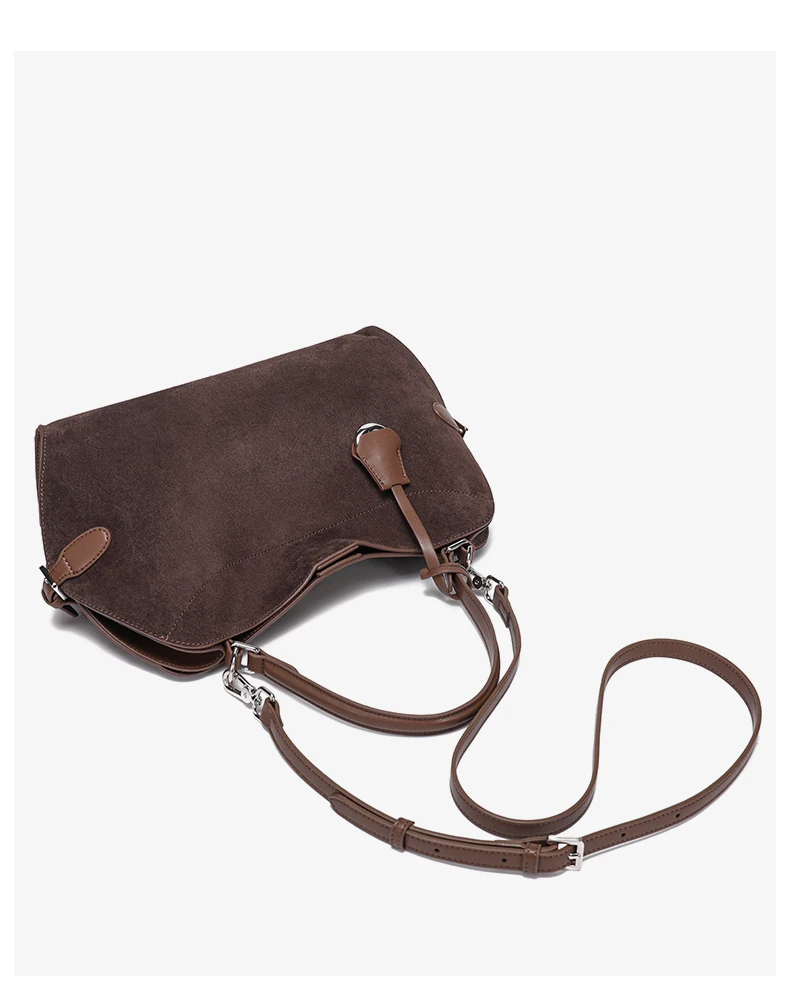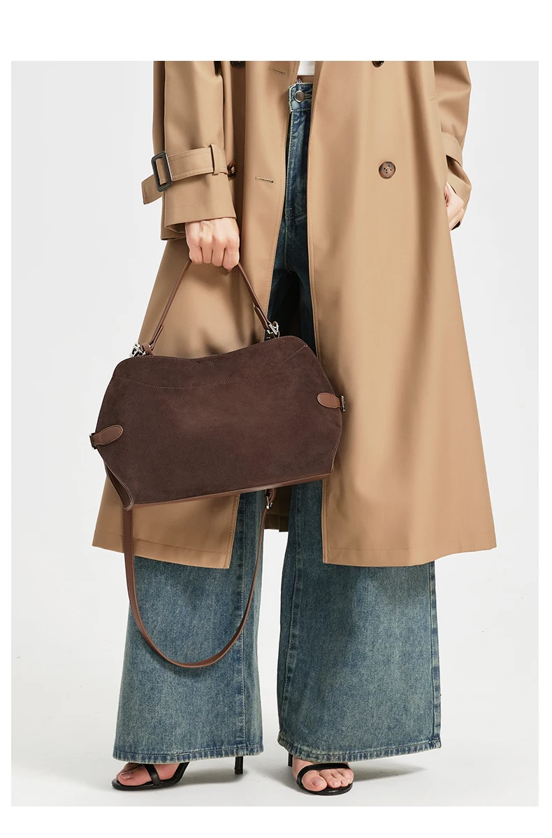 New Winter Women's Natural Suede Leather Shoulder Bags Female Soft Cowhide Durable Crossbody Bag Ladies Fashion Commute Handbags