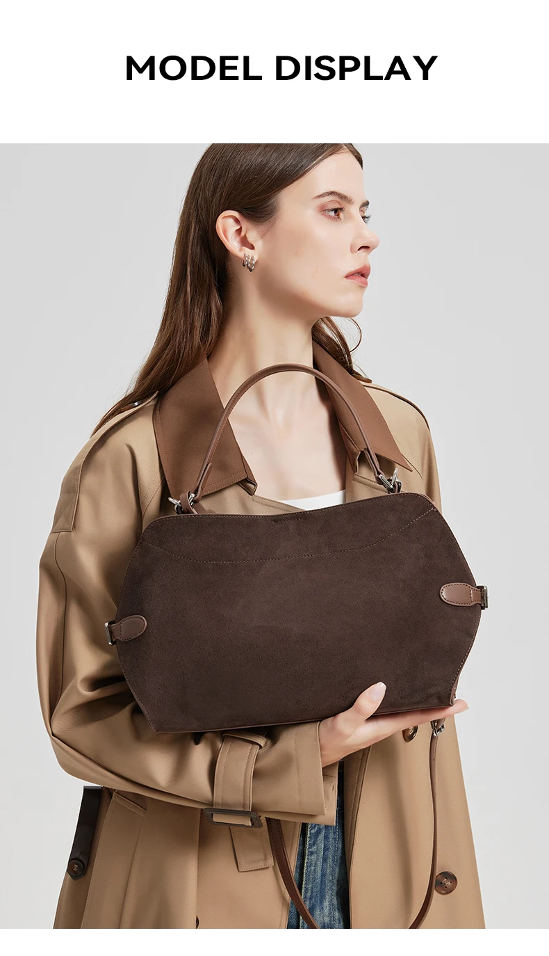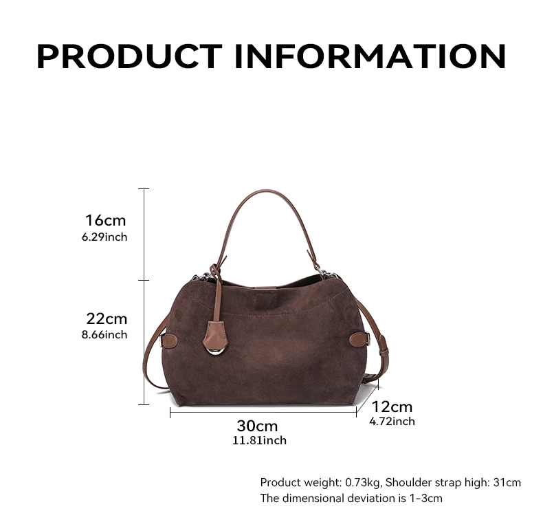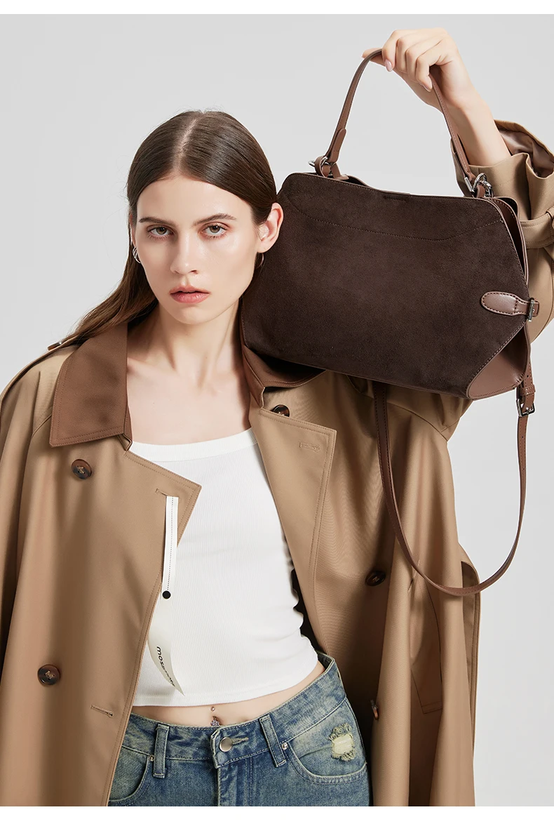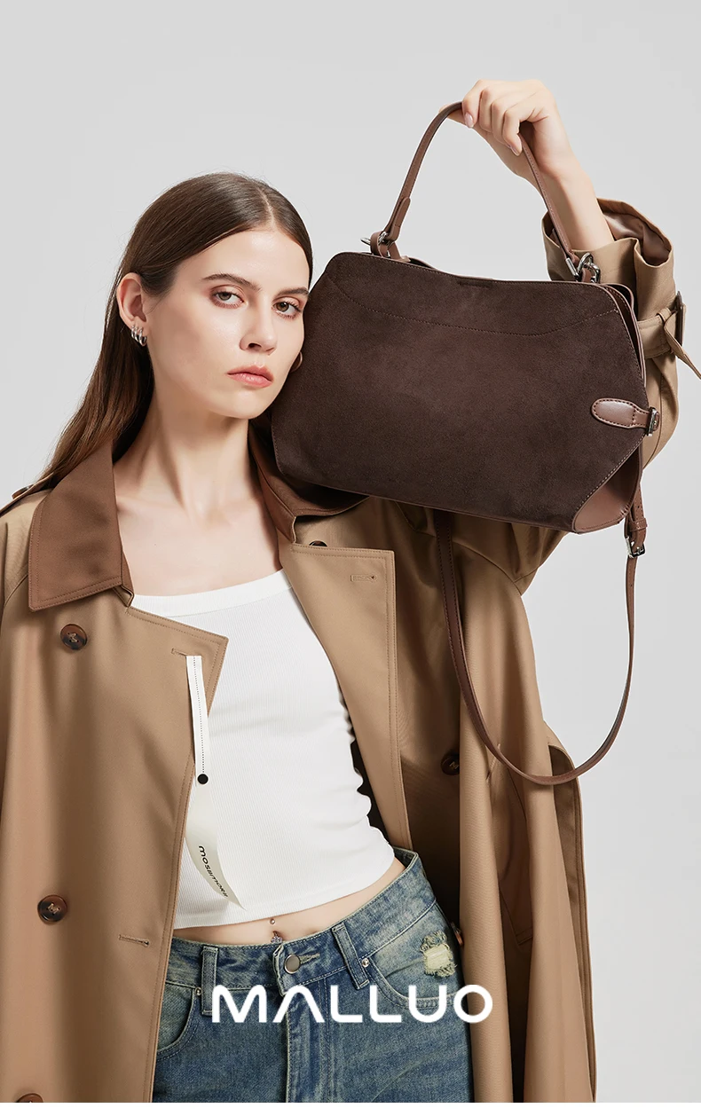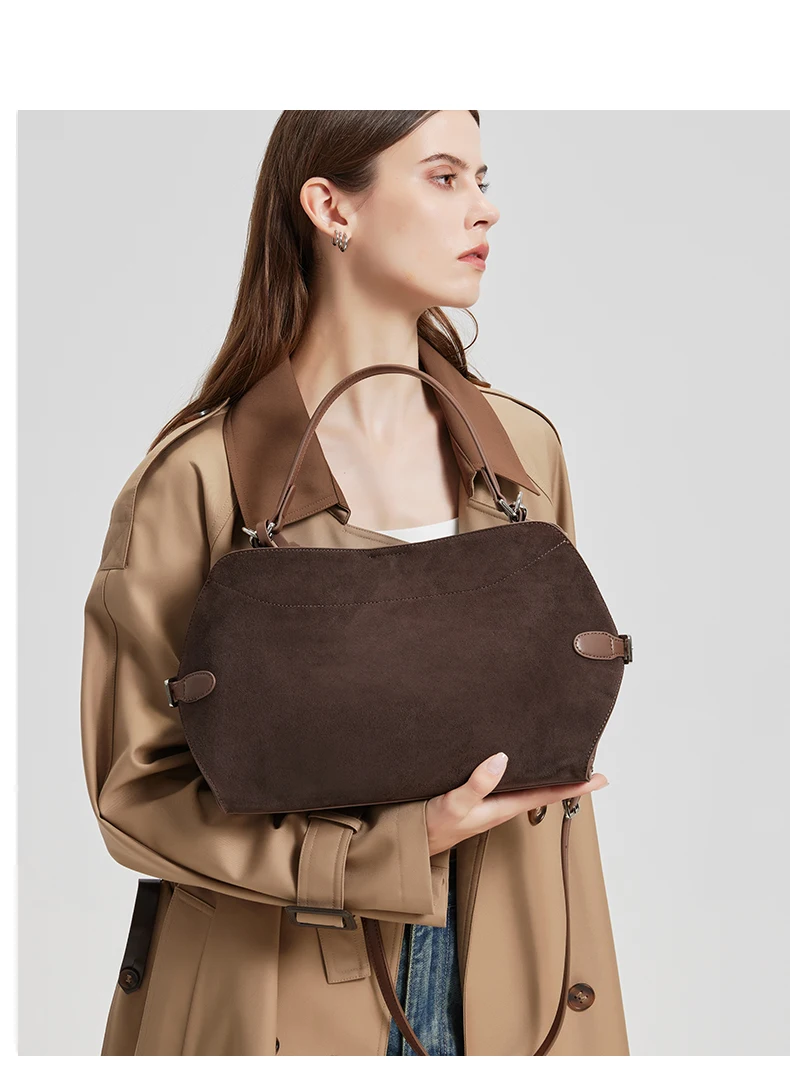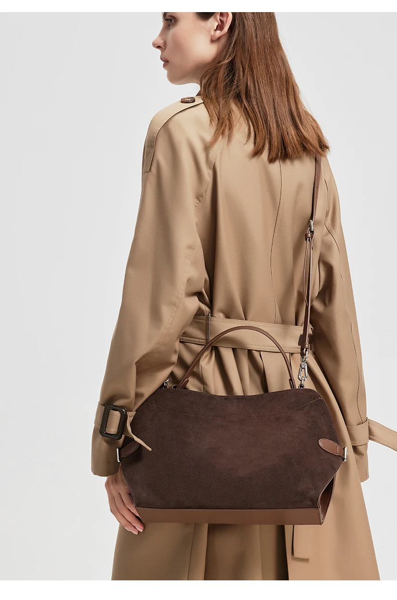 New Winter Women's Natural Suede Leather Shoulder Bags Female Soft Cowhide Durable Crossbody Bag Ladies Fashion Commute Handbags