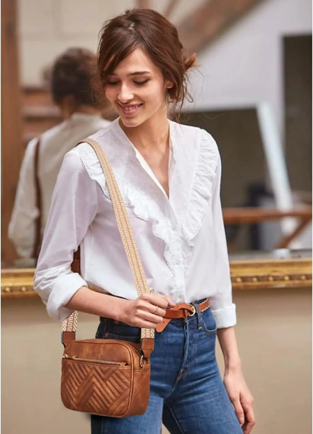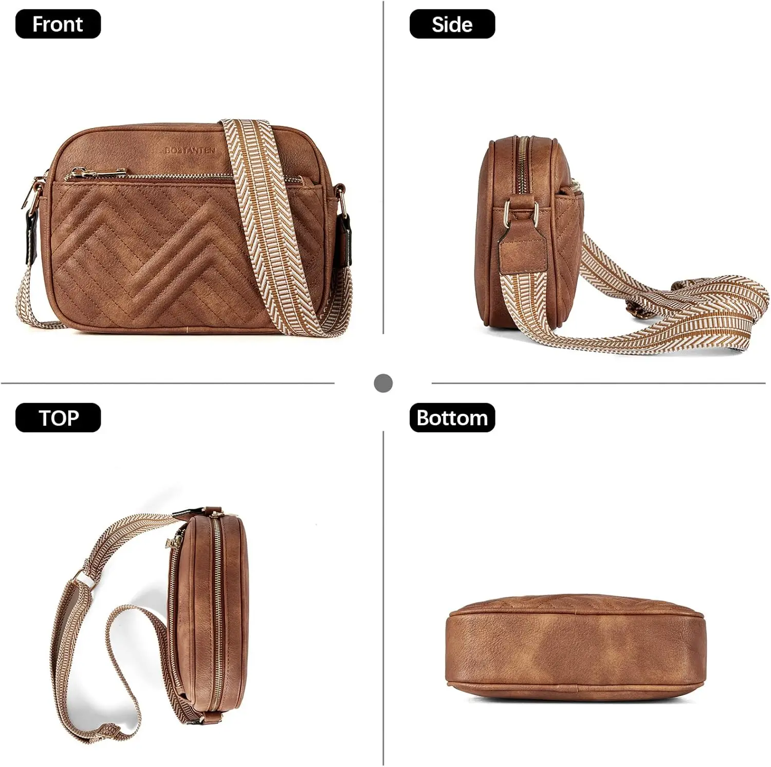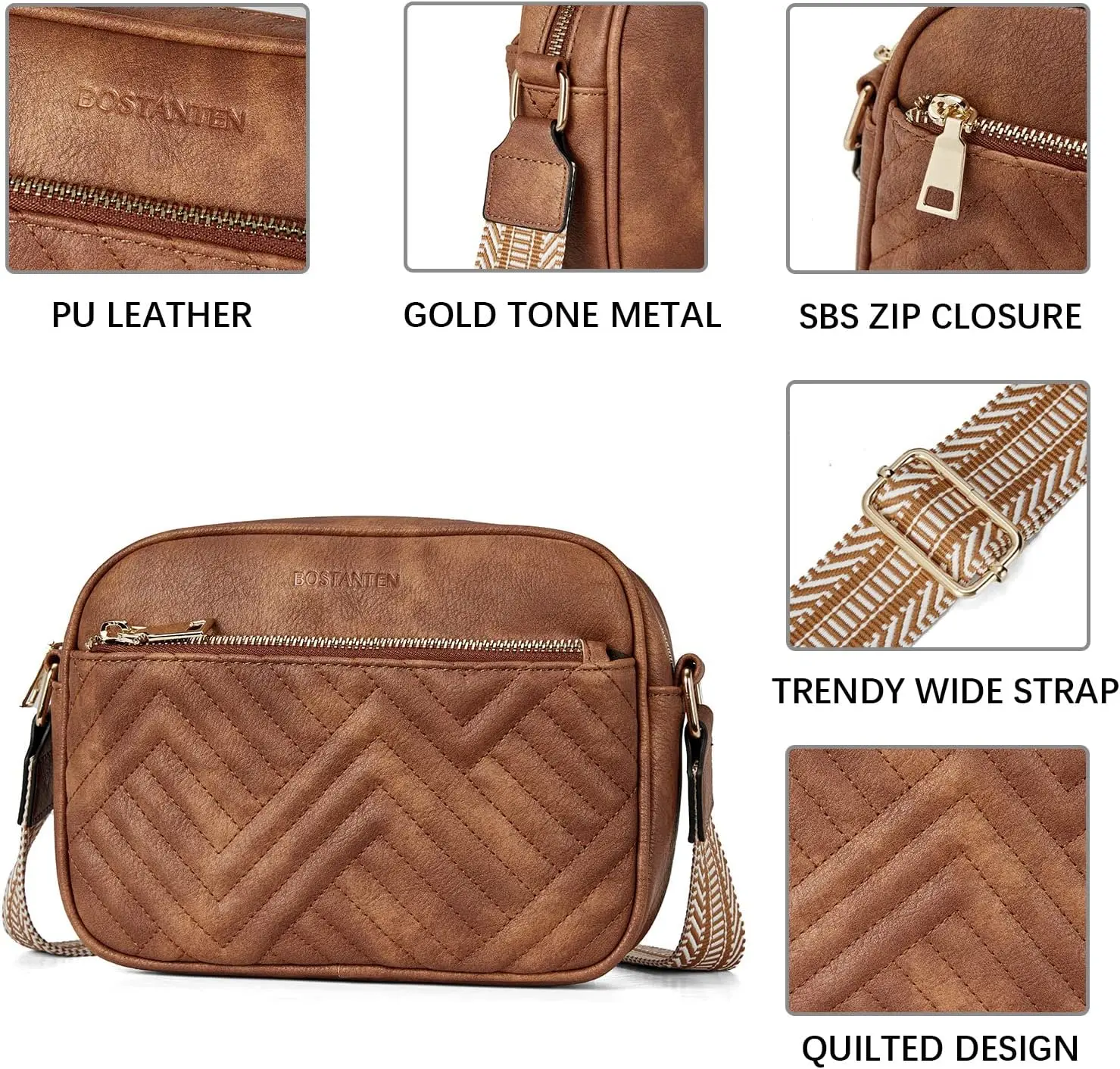 Quilted Crossbody Bags for Women Vegan Leather Purses Small Shoulder Handbags with Wide Strap Adjustable Strap