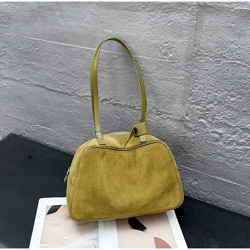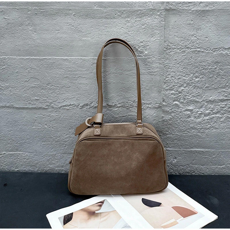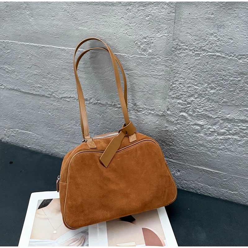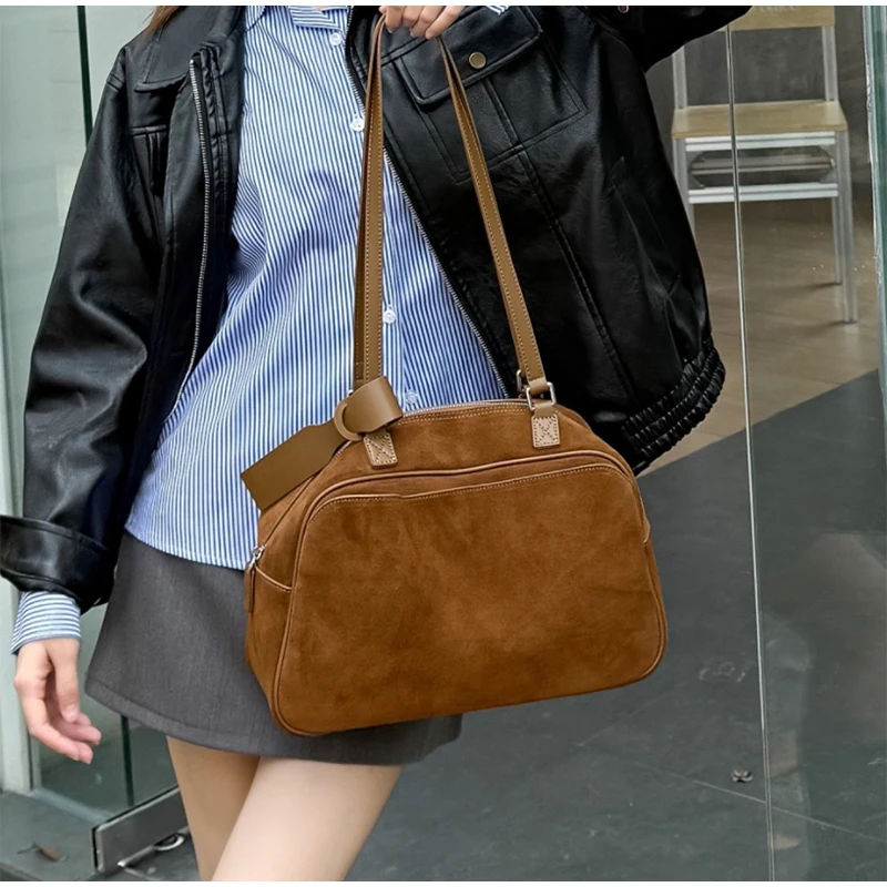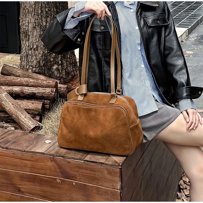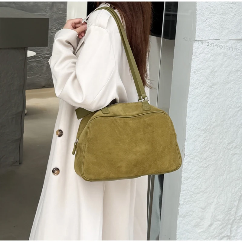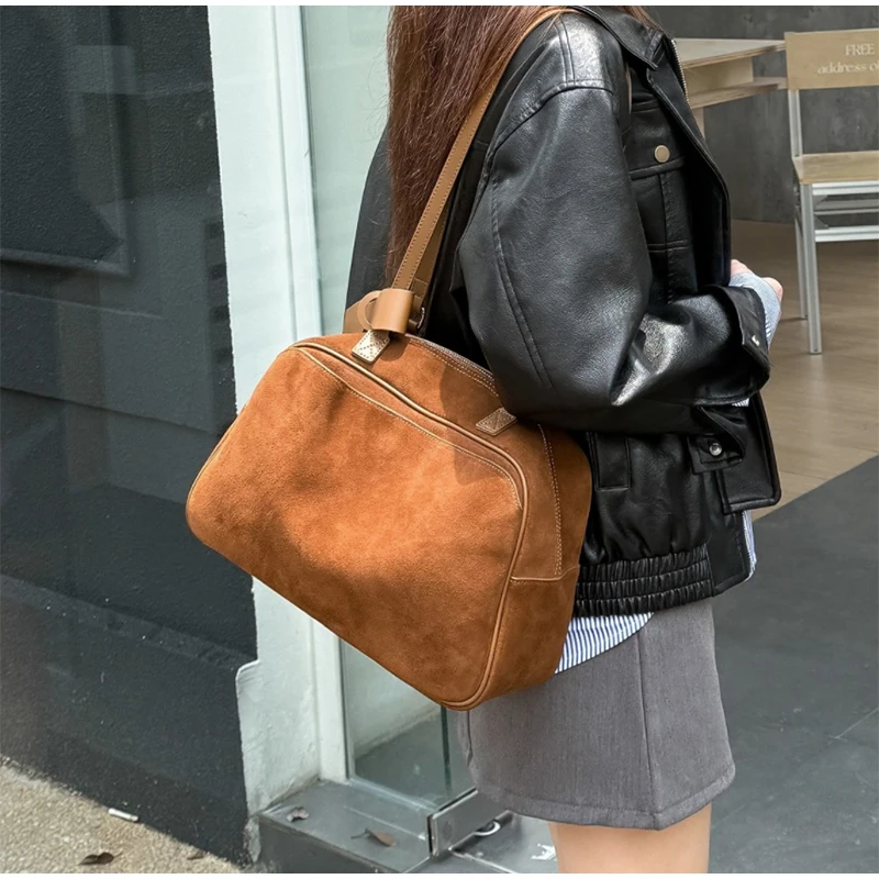 Retro Frosted Cowhide Shoulder Bag Niche Suede Large Capacity Ladies Handbag High-end Genuine Leather Underarm Bag Women's Bag
