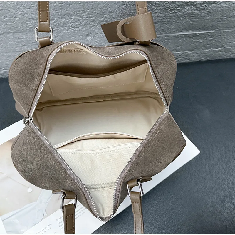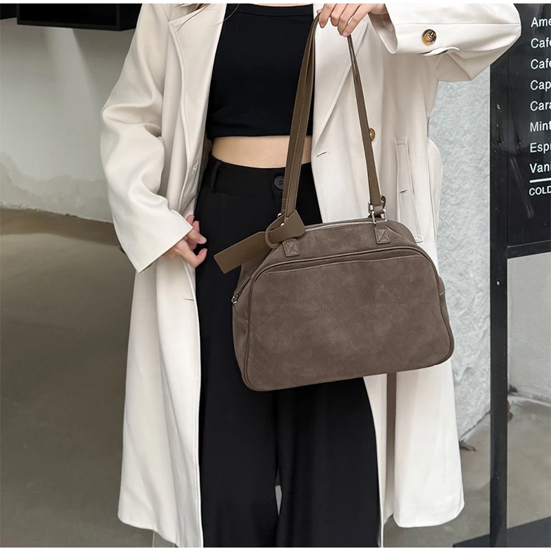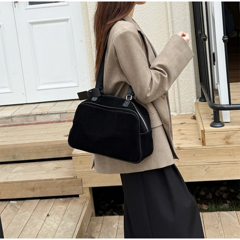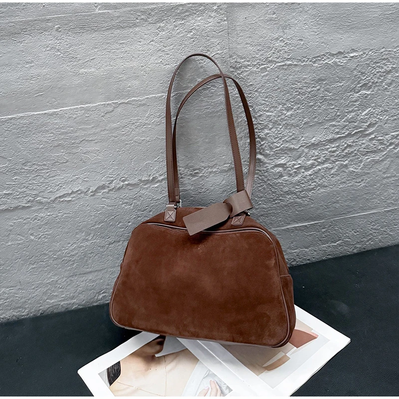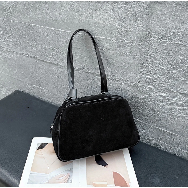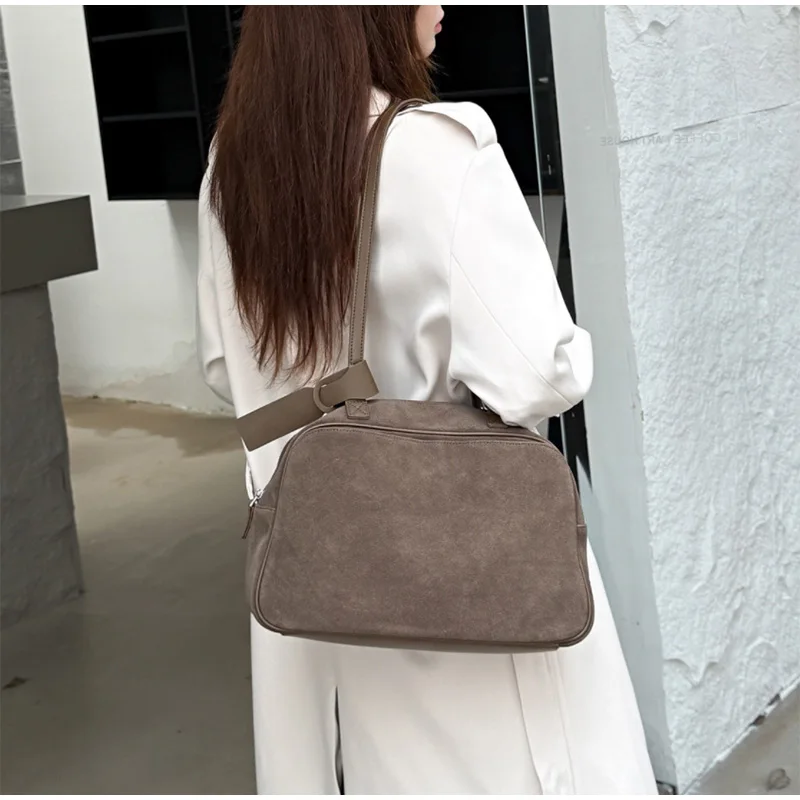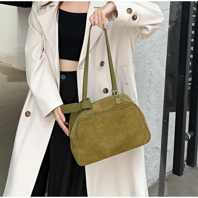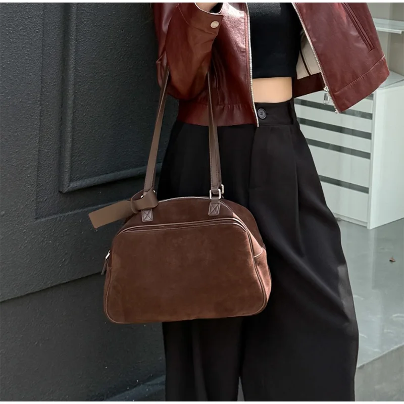 Retro Frosted Cowhide Shoulder Bag Niche Suede Large Capacity Ladies Handbag High-end Genuine Leather Underarm Bag Women's Bag