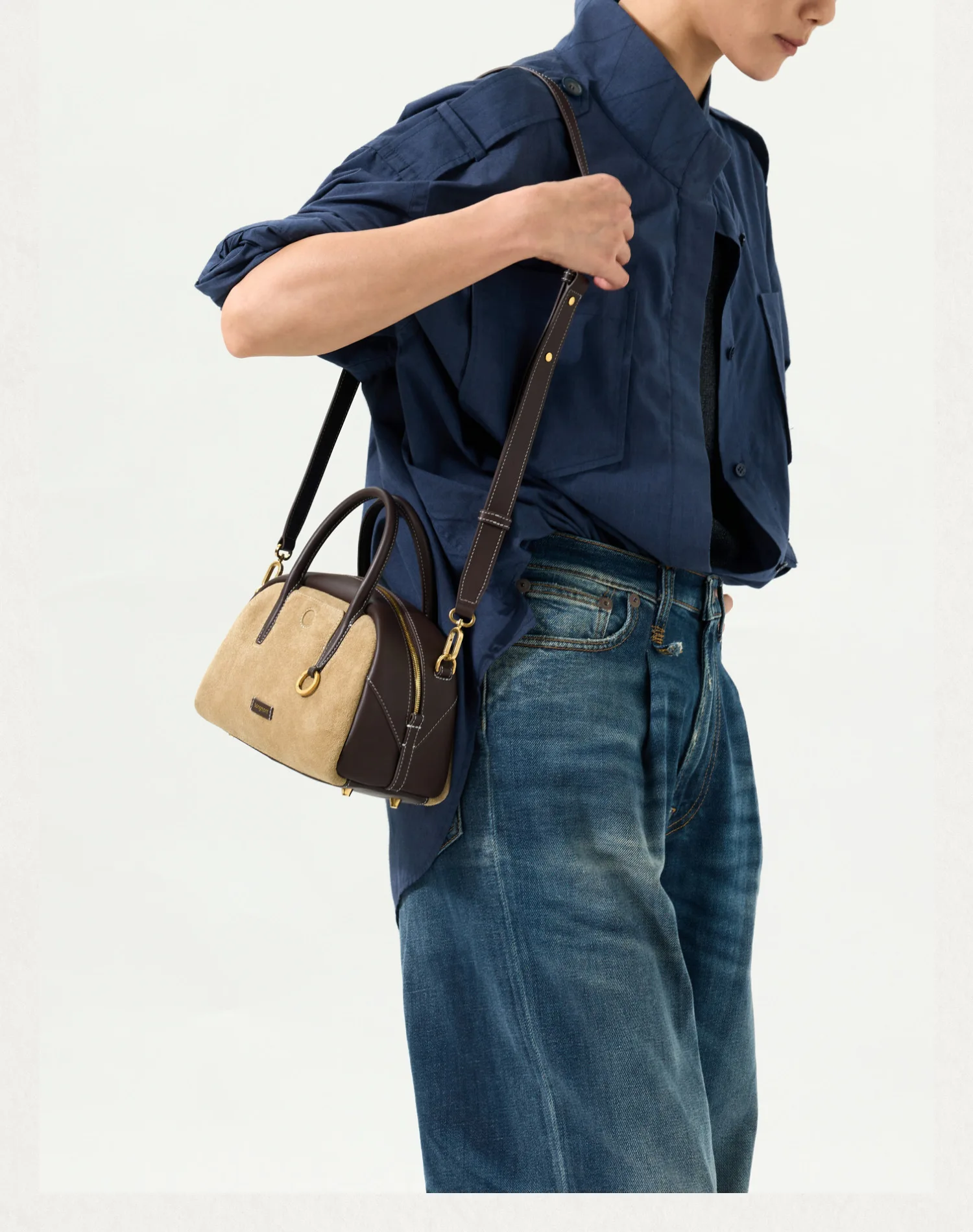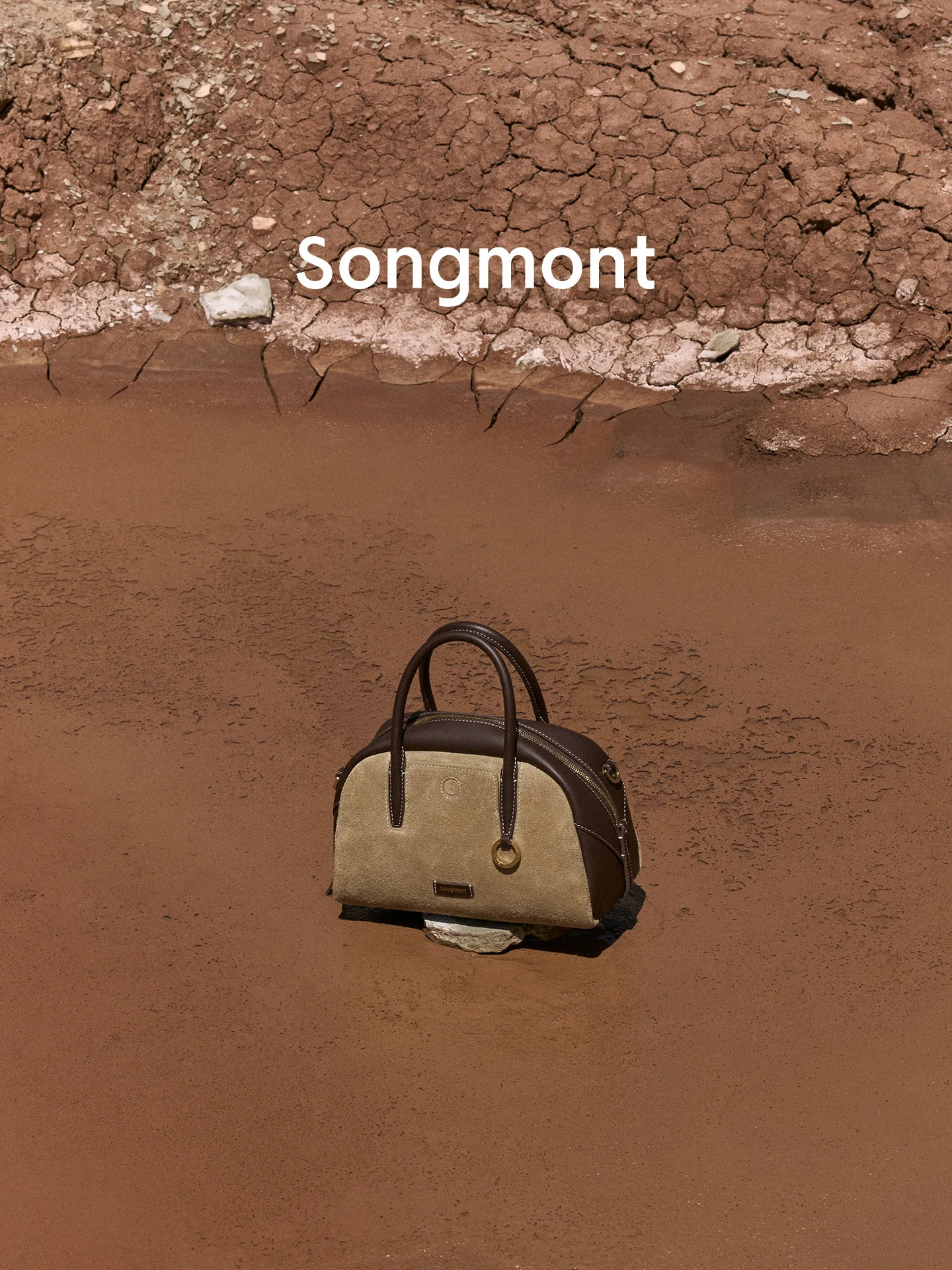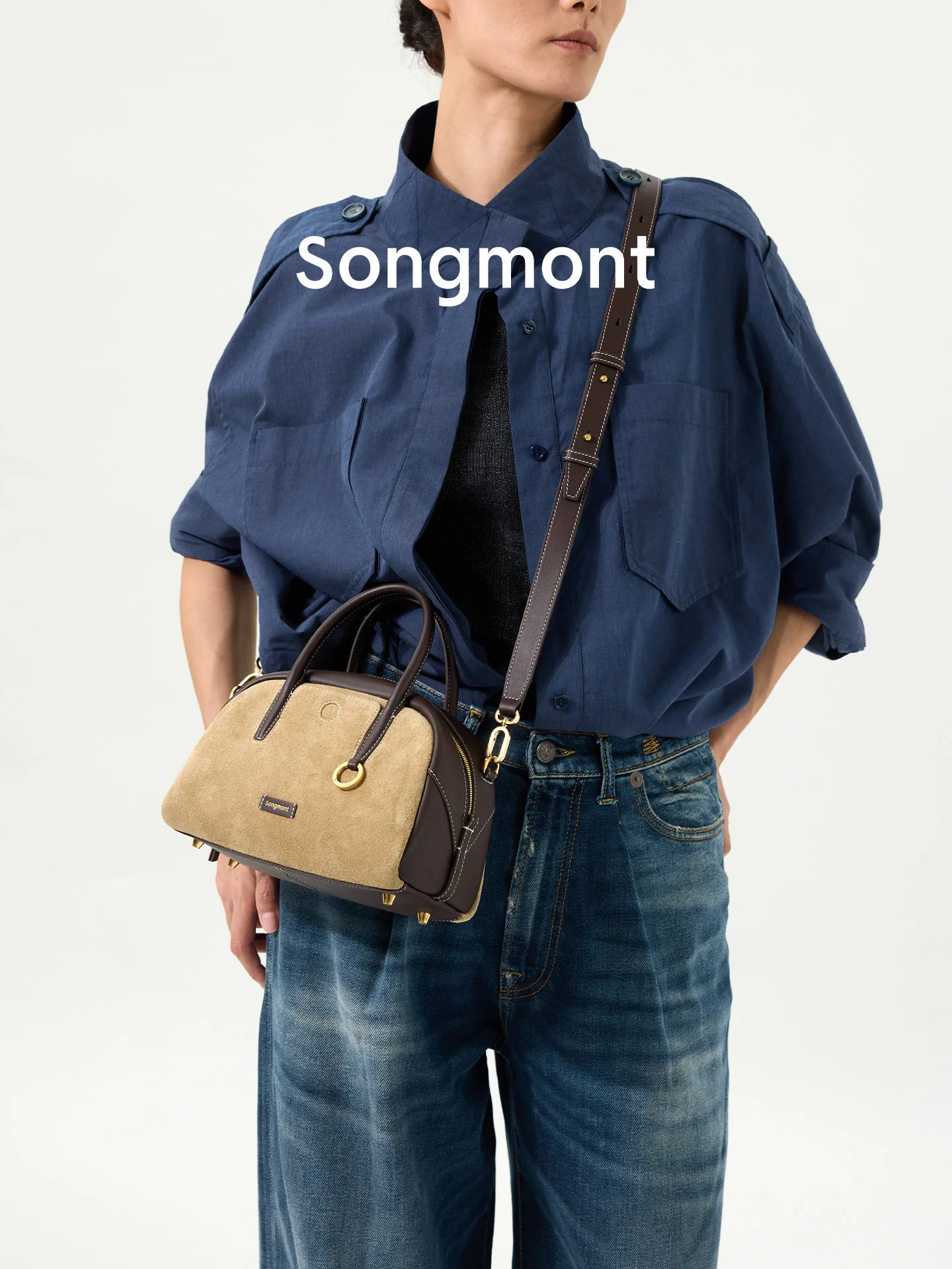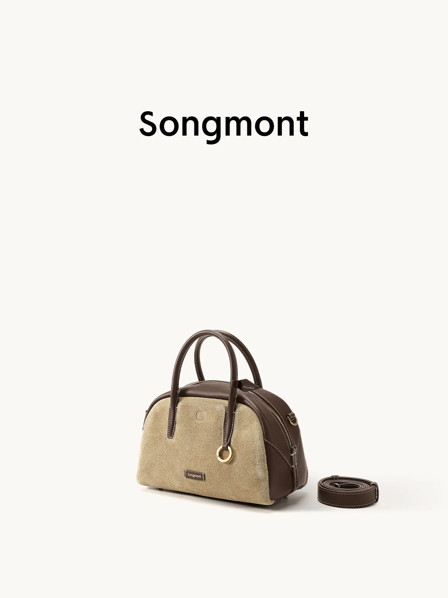 Songmont Mini Bowling Suede Boston Tote Bag Crossbody Mini Bag