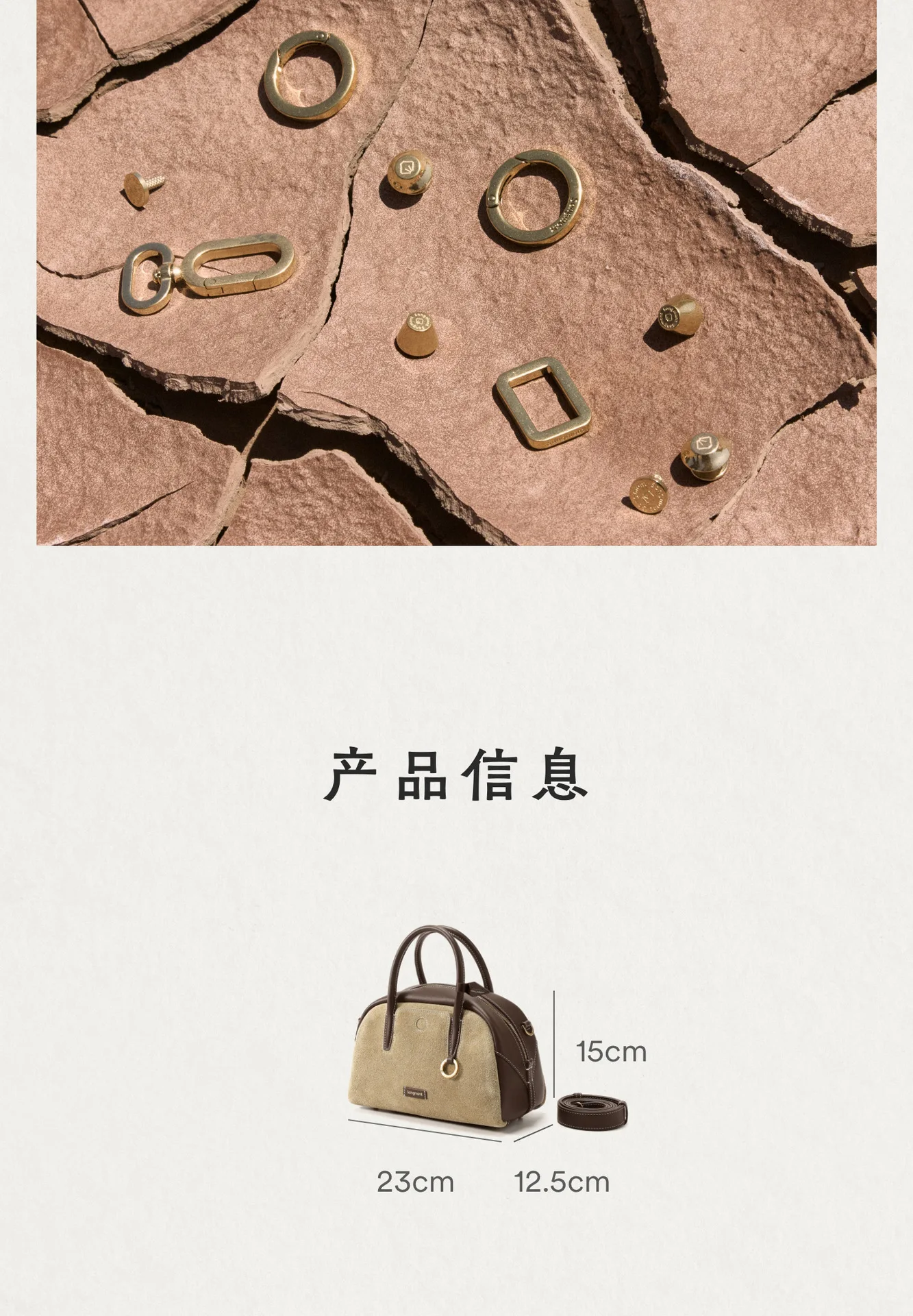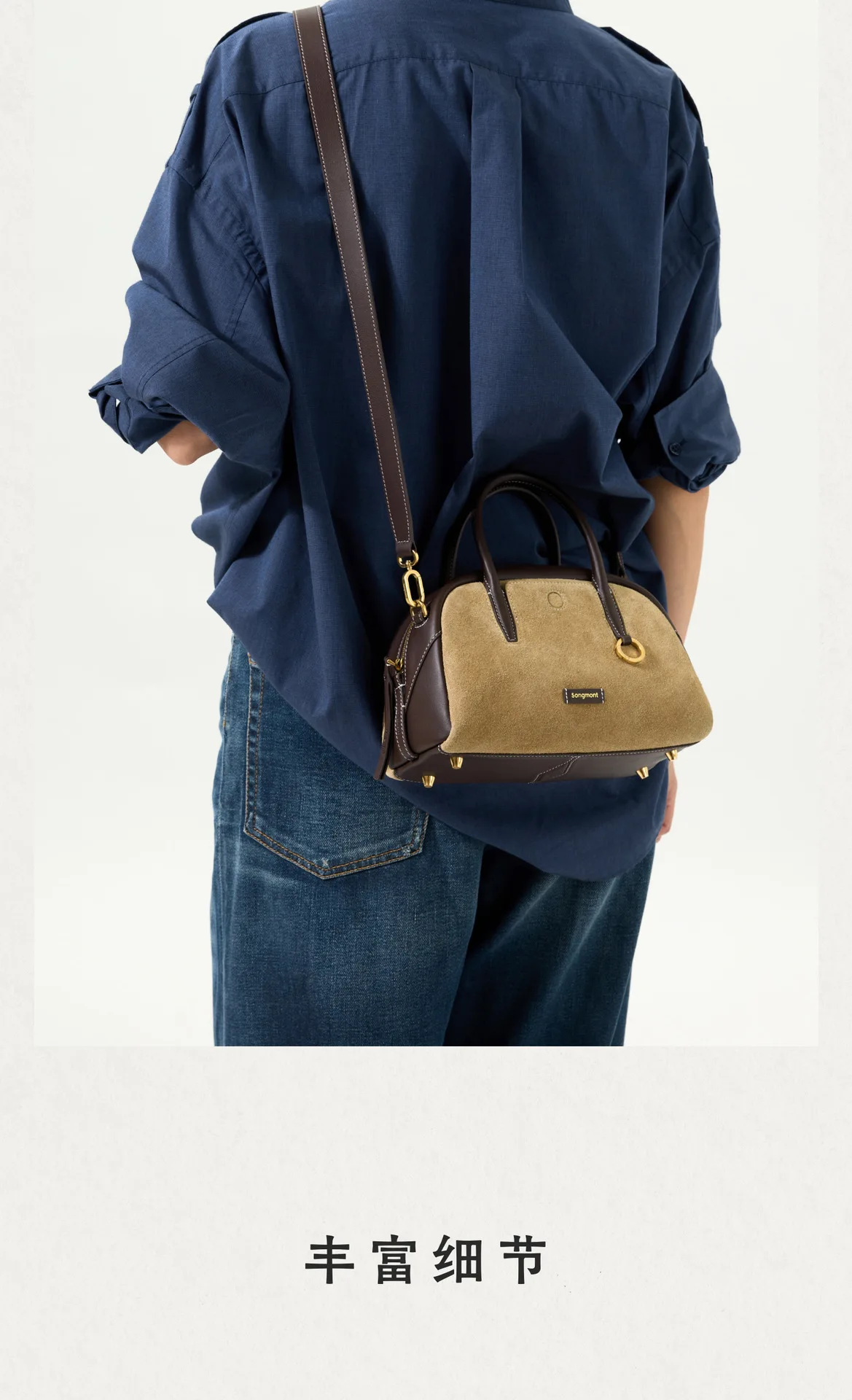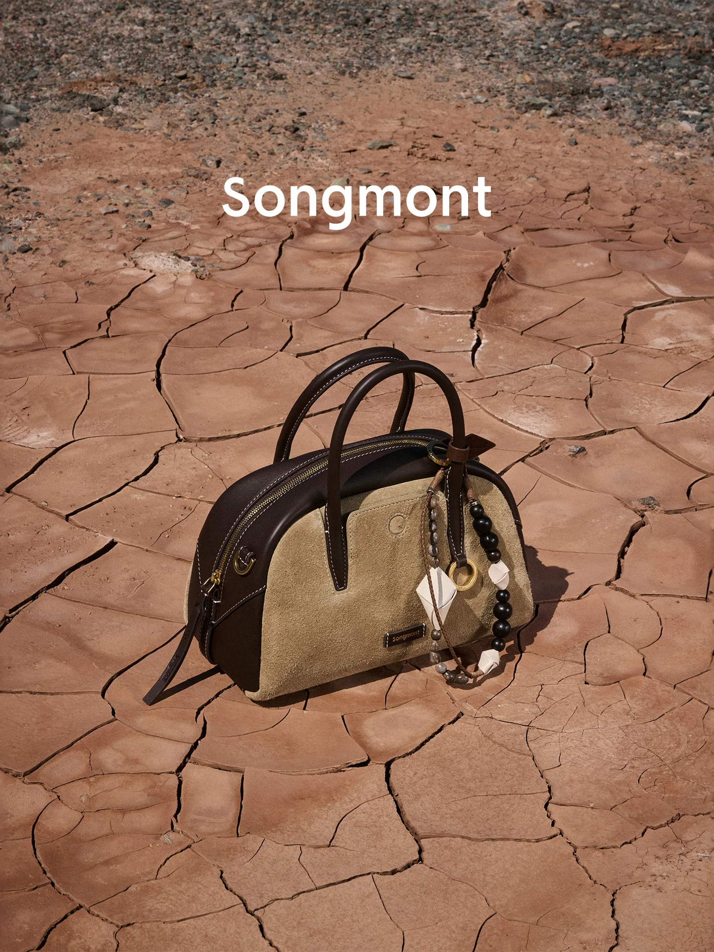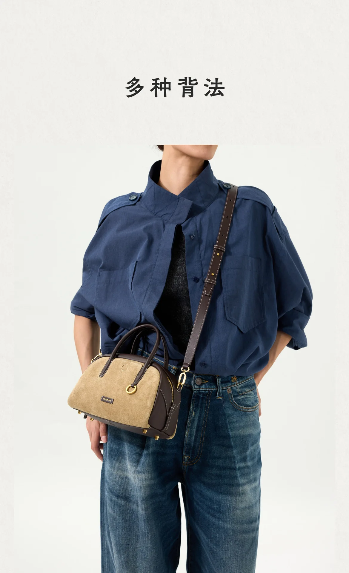 Songmont Mini Bowling Suede Boston Tote Bag Crossbody Mini Bag