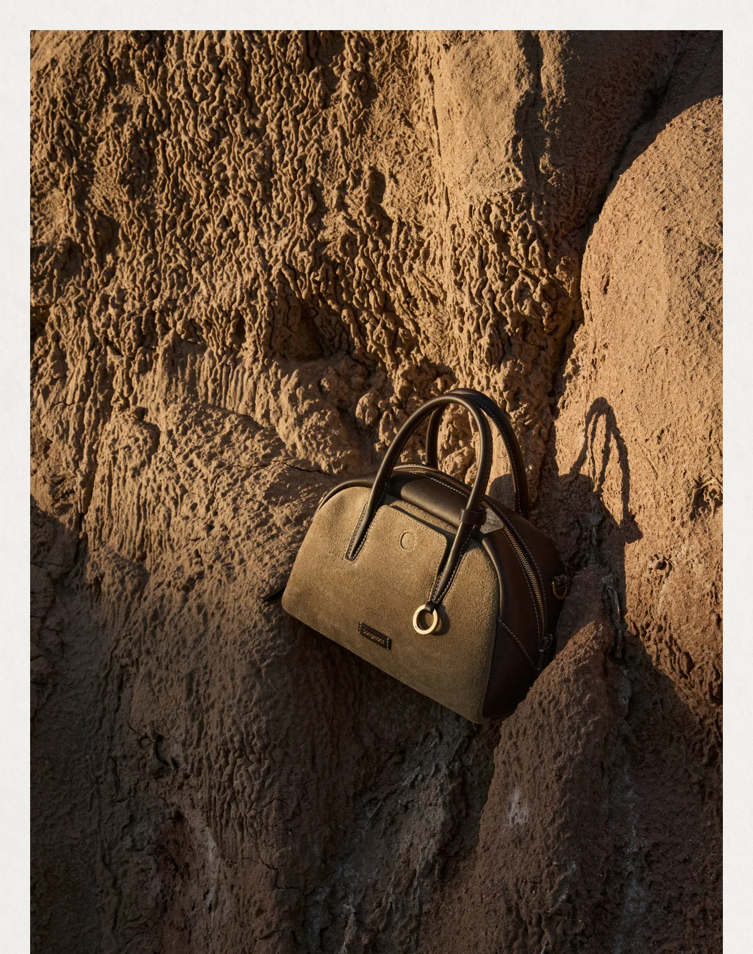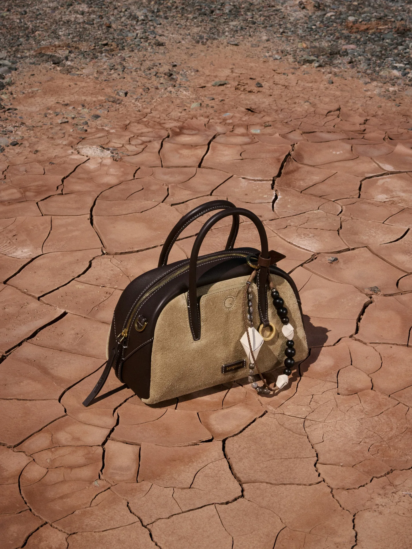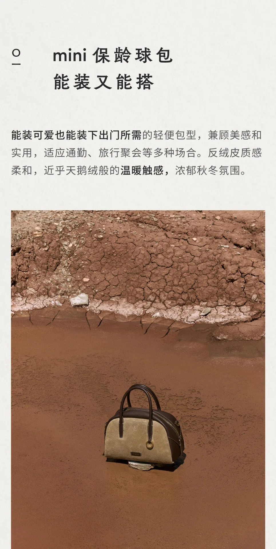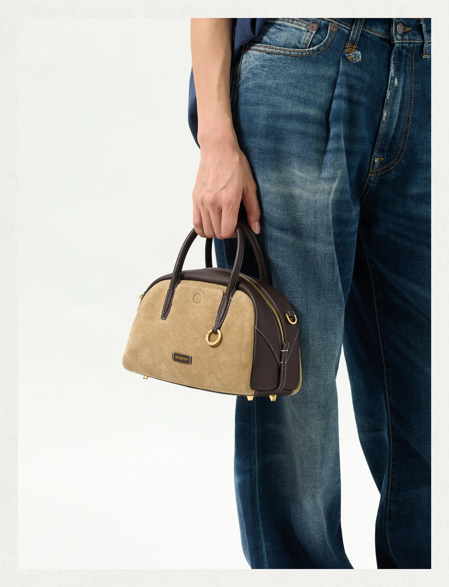 Songmont Mini Bowling Suede Boston Tote Bag Crossbody Mini Bag