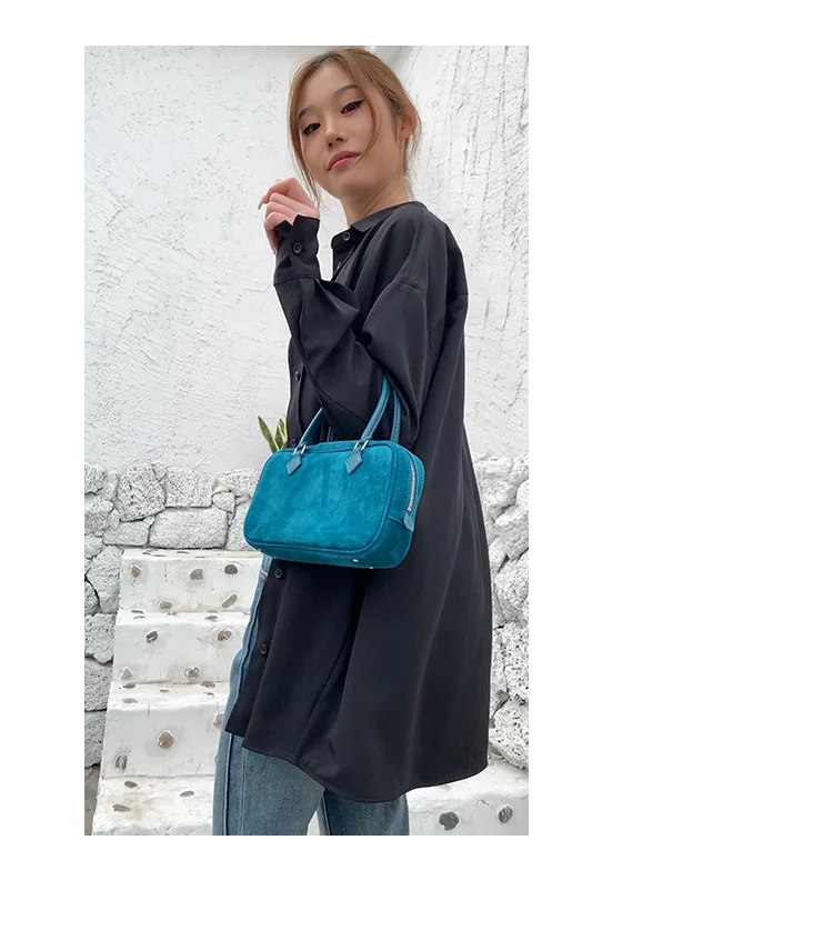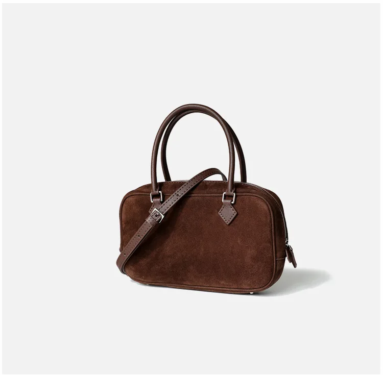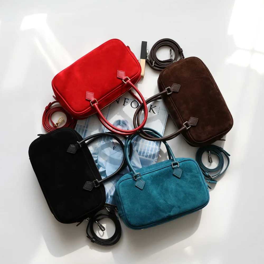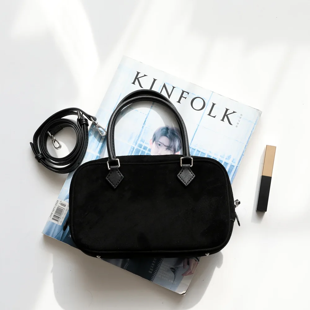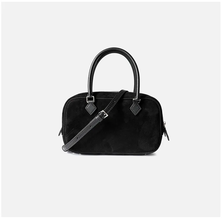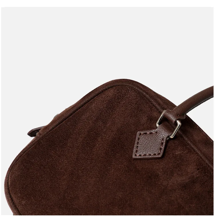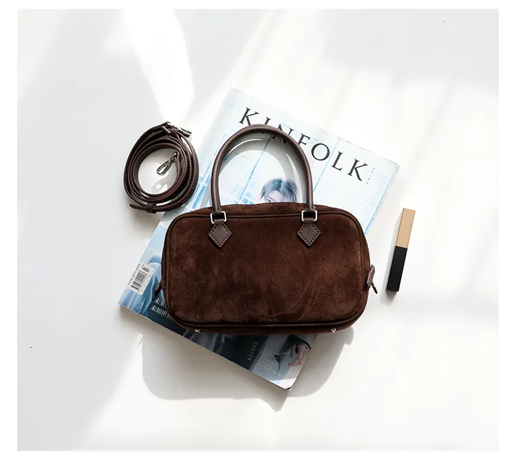 Suede Boston Bag 2025 New Niche Design Sheepskin High Quality Antique One-Shoulder Crossbody Bag Fashion Women's Handheld Square Bag