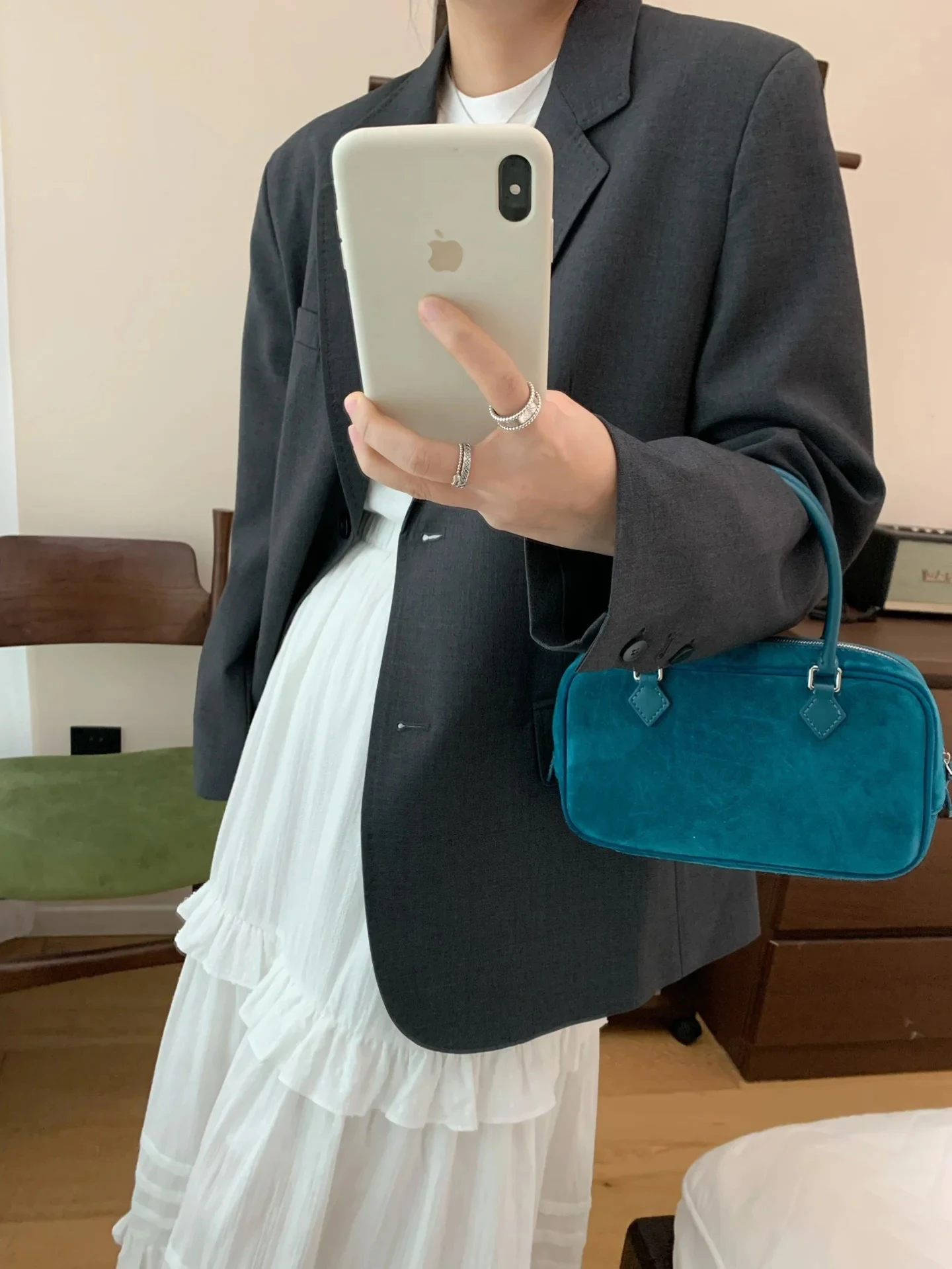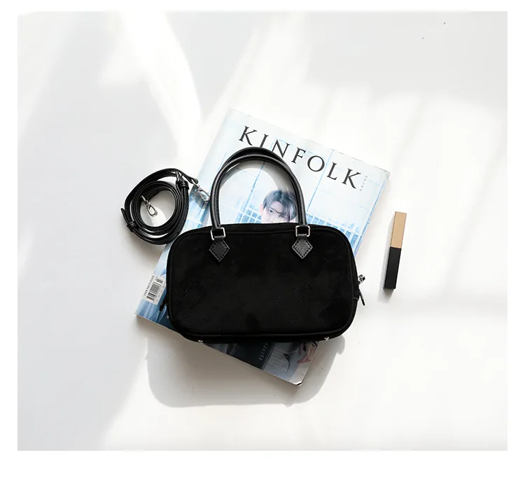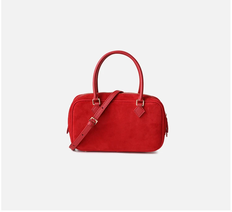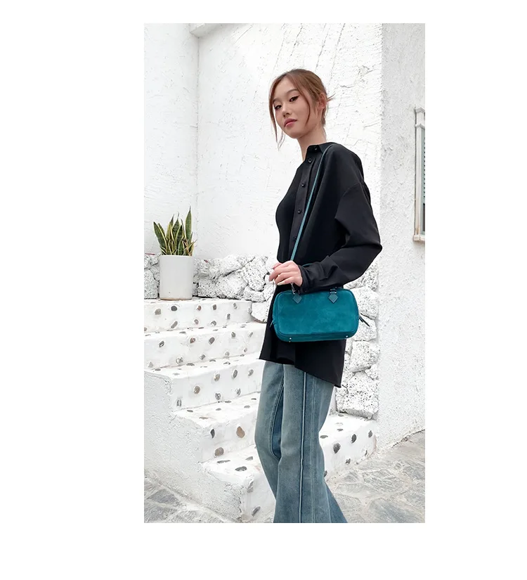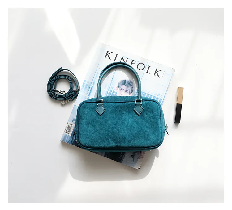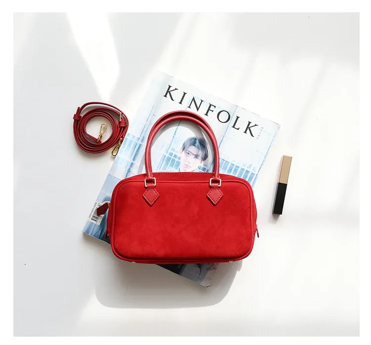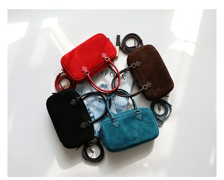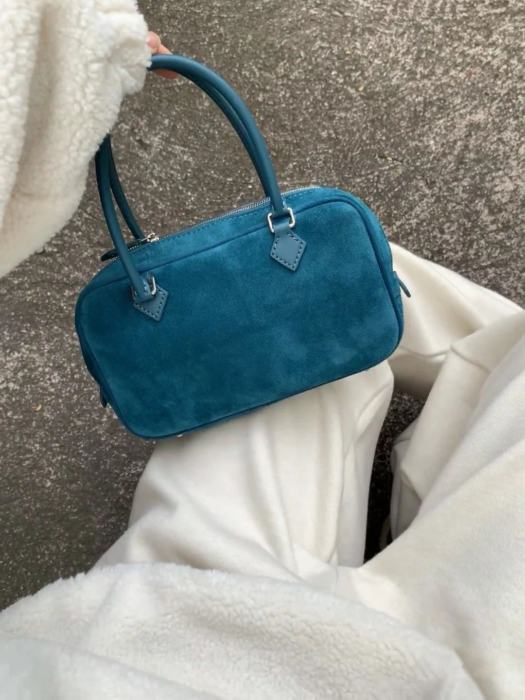 Suede Boston Bag 2025 New Niche Design Sheepskin High Quality Antique One-Shoulder Crossbody Bag Fashion Women's Handheld Square Bag