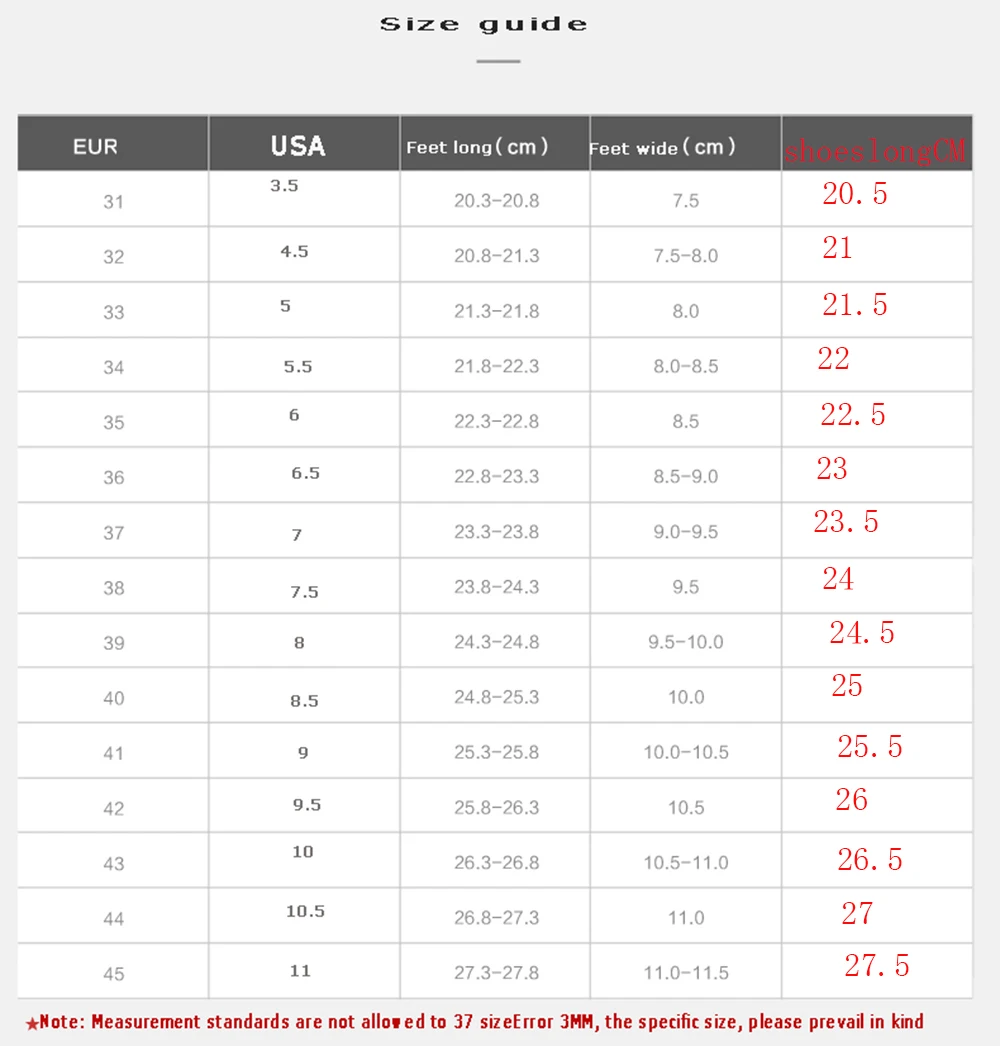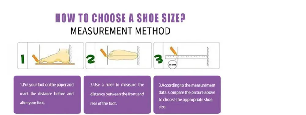 To avoid delaying your package time, please measure your foot length before purchasing shoes and choose the correct size according to our size chart. To prevent buyers from delaying the use of shoes, as centimeter length is an internationally recognized unit, they will not purchase the wrong size.