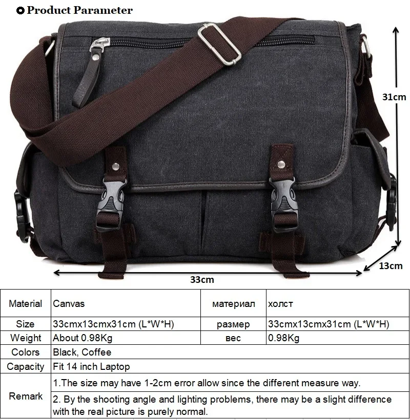 Vintage Crossbody Bag Canvas shoulder bags Men messenger bag men casual Handbag 14 inch laptop Briefcase Leisure bag