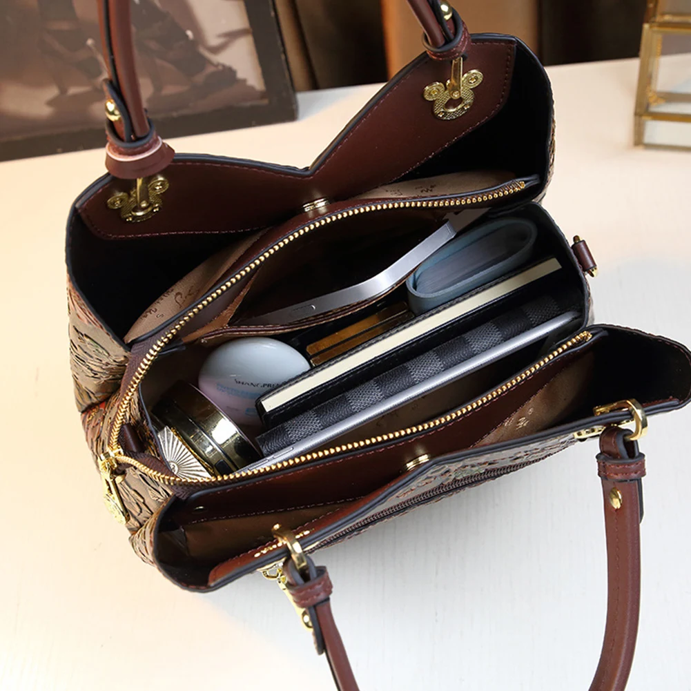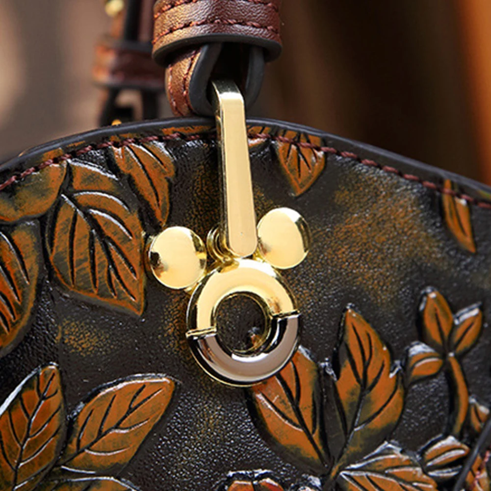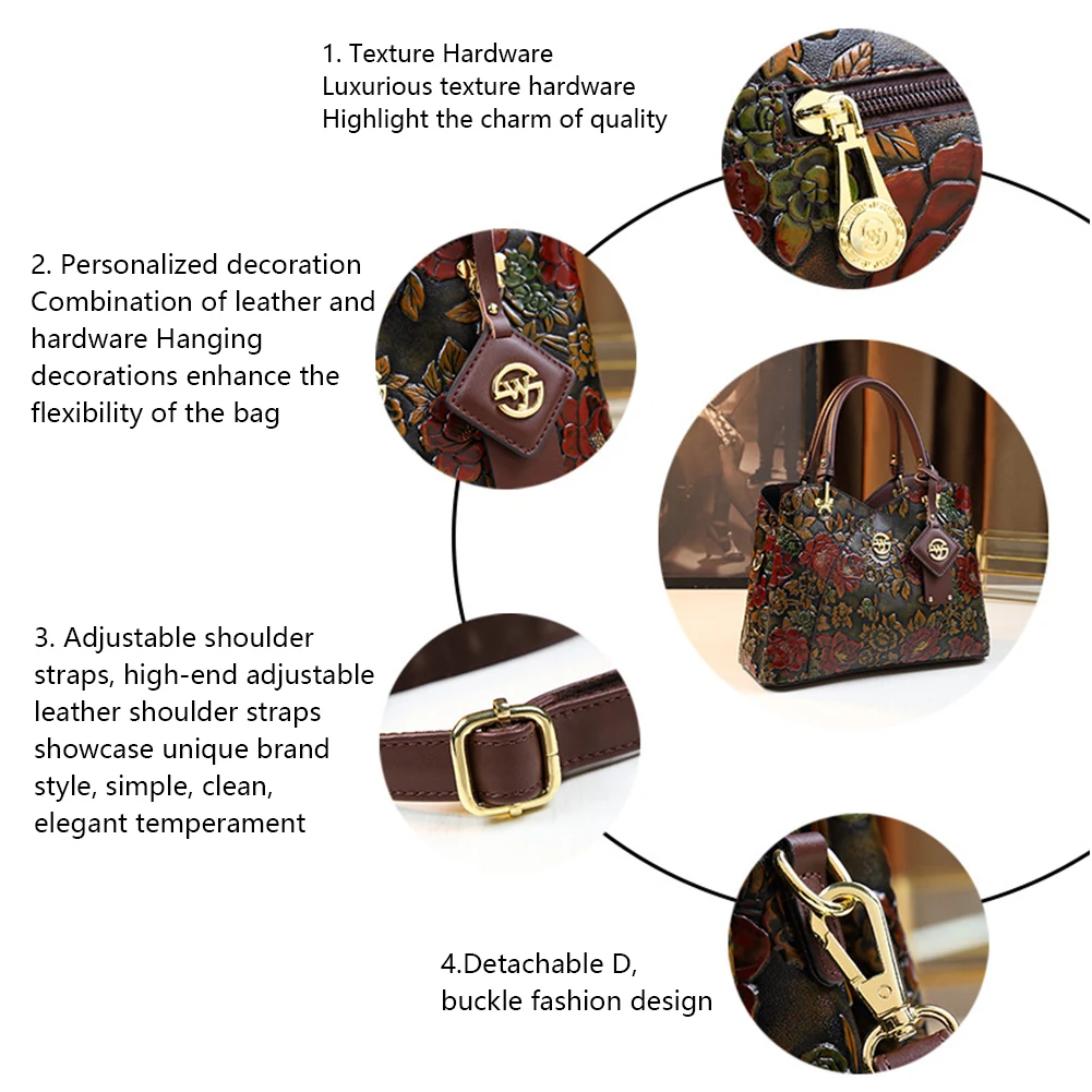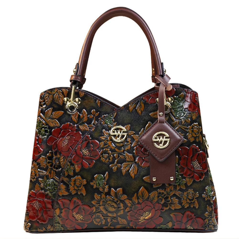 Women Flower Leather Middle-aged Mother Bag Adjustable Fashion Crossbody Bag Zipper Closure Carved Retro Handbag Large Capacity for Daily Use Satchel Bag