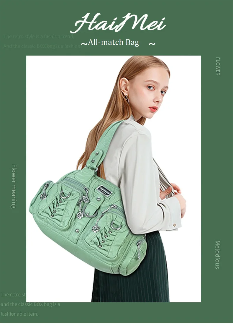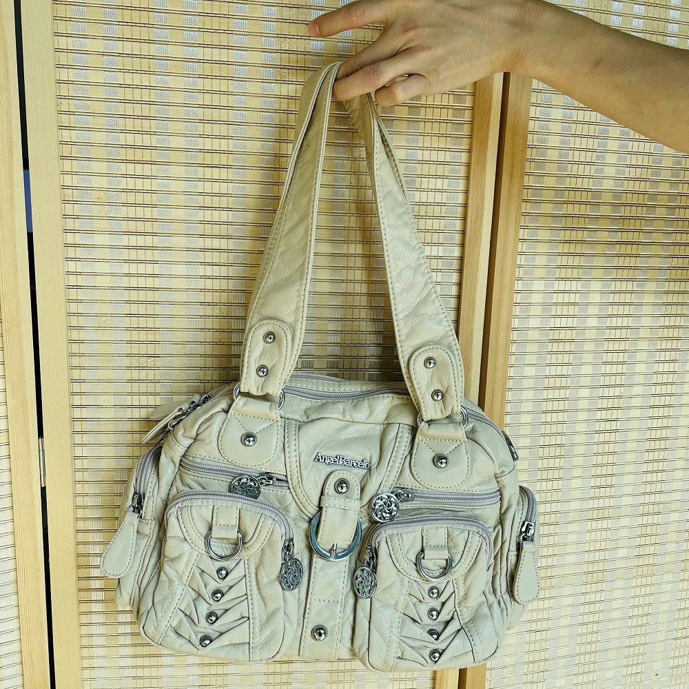 SPECIFICATIONSBrand Name: Angel kissCN: GuangdongChoice: yesClosure Type: ZipperDecoration: NoneExterior: Solid BagGender: WomenHandbags Type: Shoulder BagsHardness: SOFTHigh-concerned chemical: NoneInterior: Interior Slot Pocket,Cell Phone Pocket,Interior Zipper PocketLining Material: POLYESTERMain Material: PUModel Number: AKW22032Number...